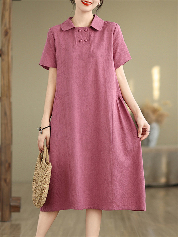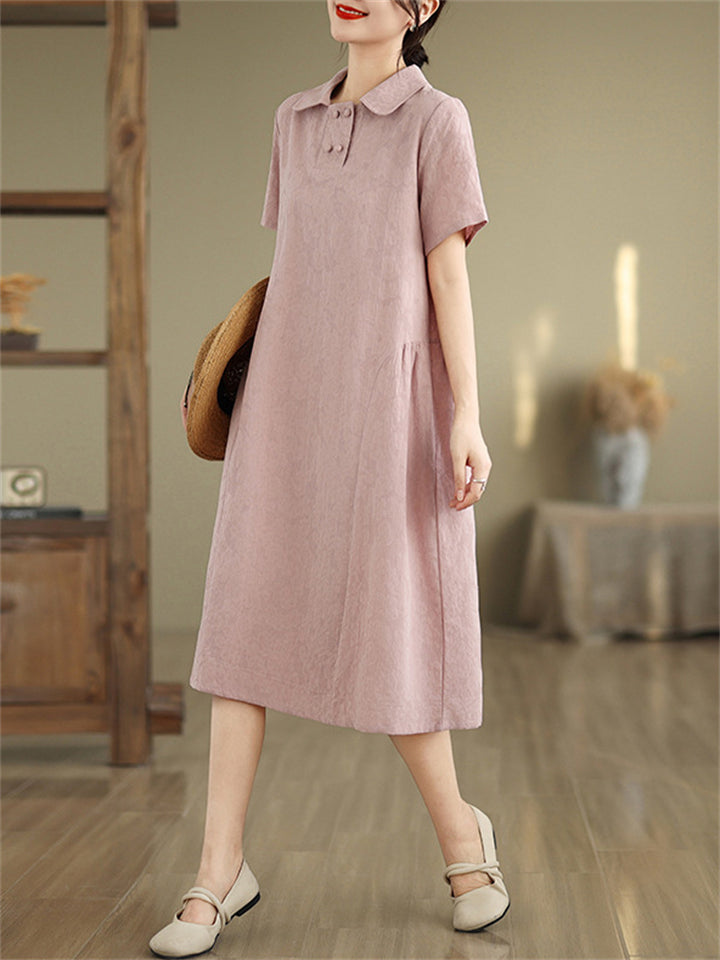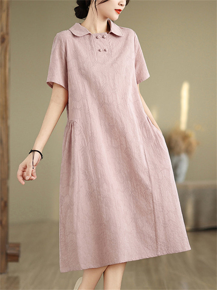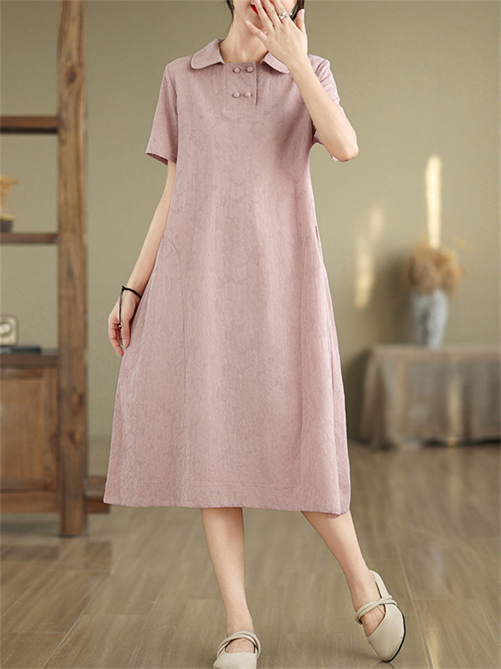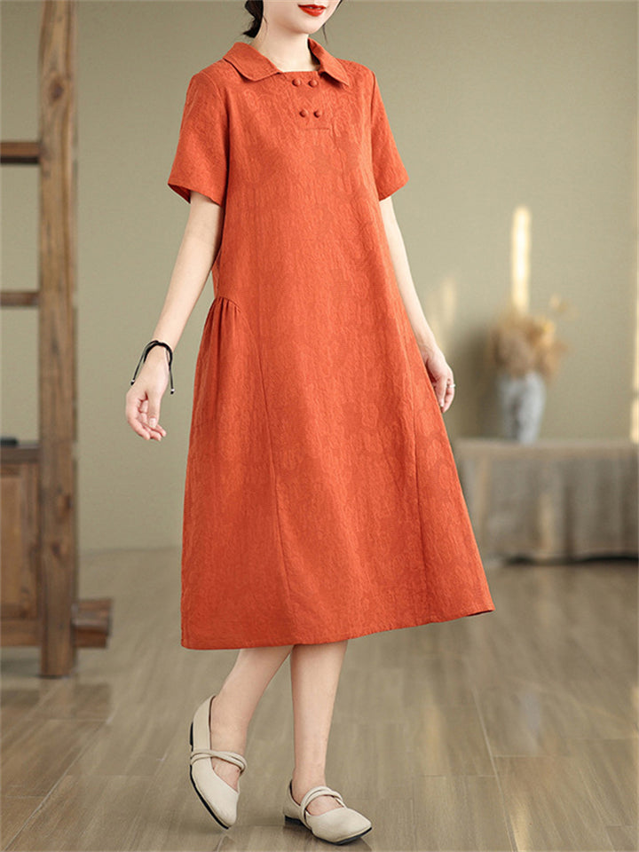 Elegant Lapel Short Sleeve Jacquard Dress for Women