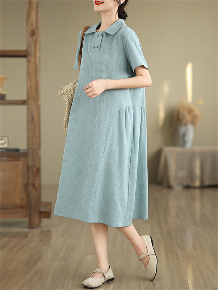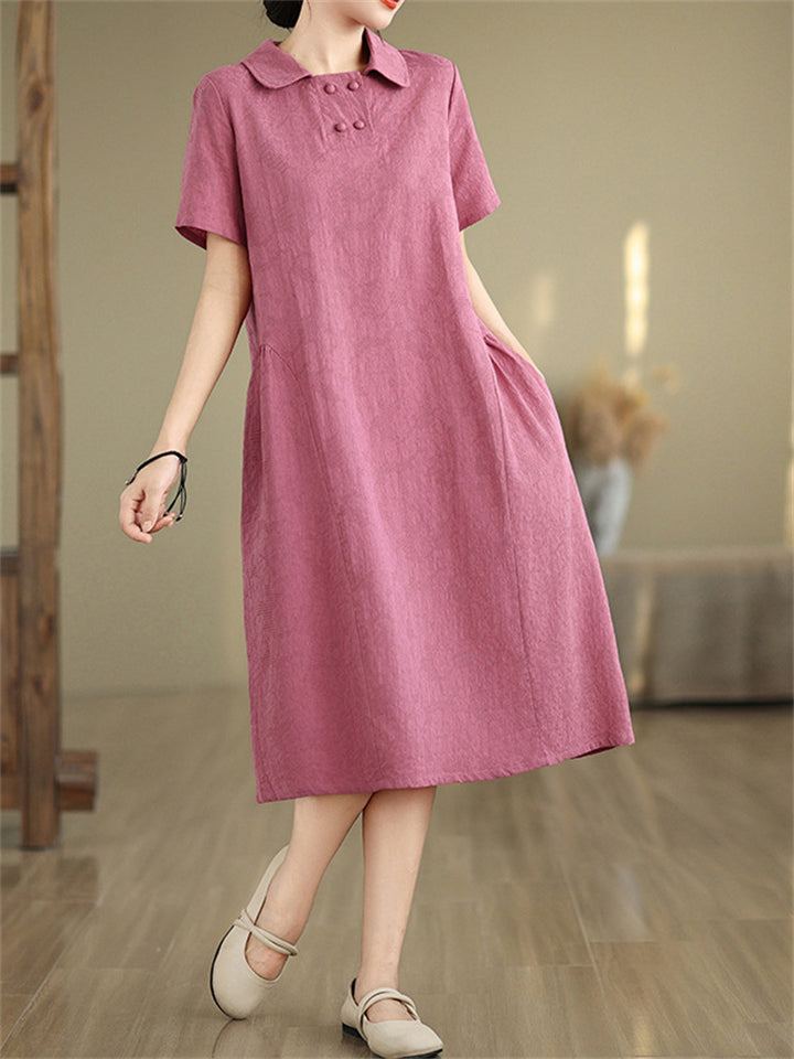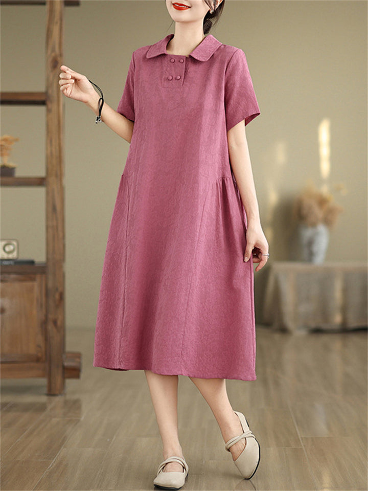 Women's Elegant White Solid Color Loose Button Up Shirt Dress