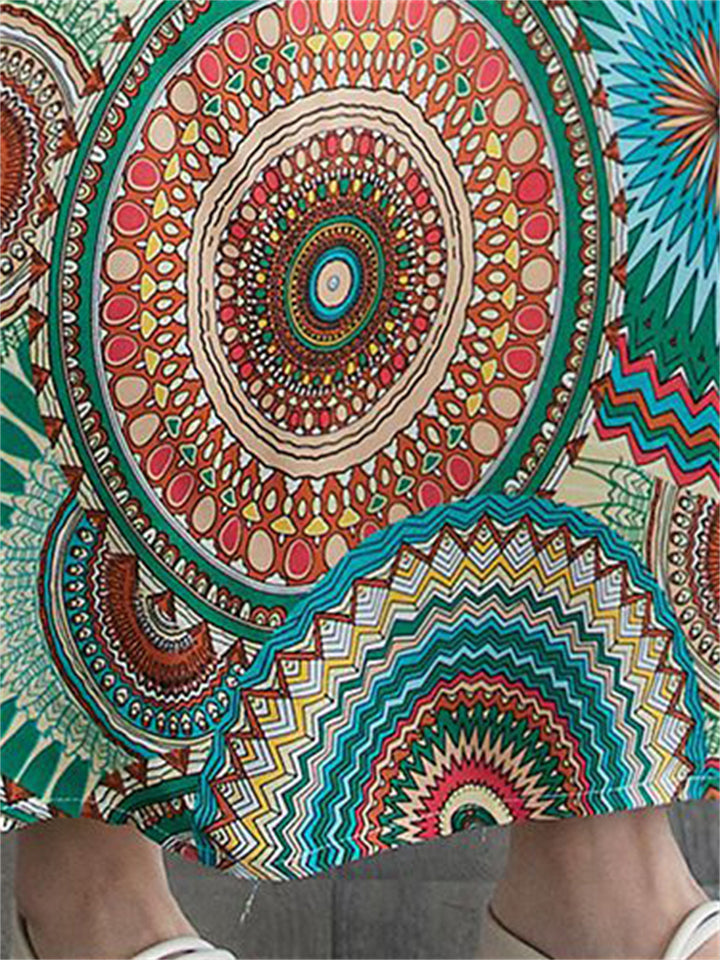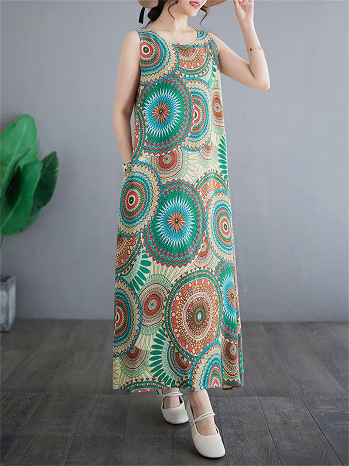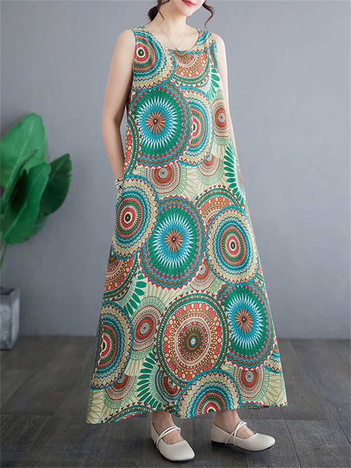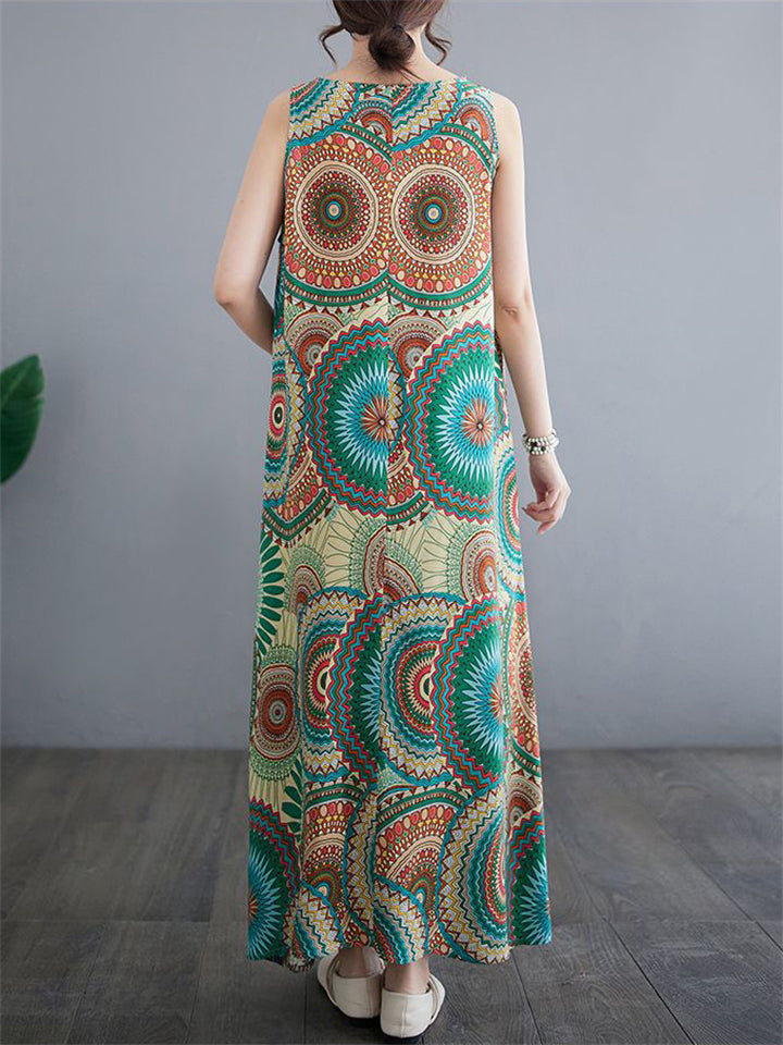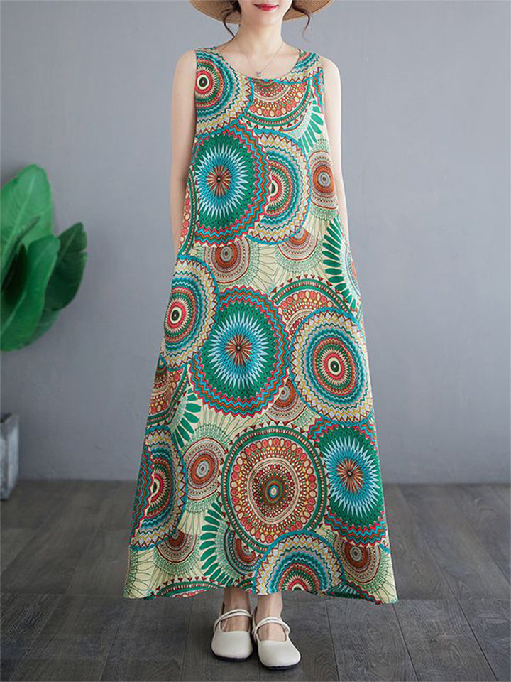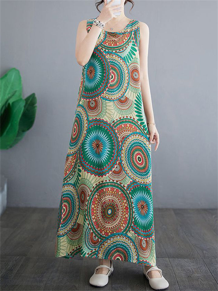 Ethnic Circle Print Cozy Holiday Tank Dress for Women