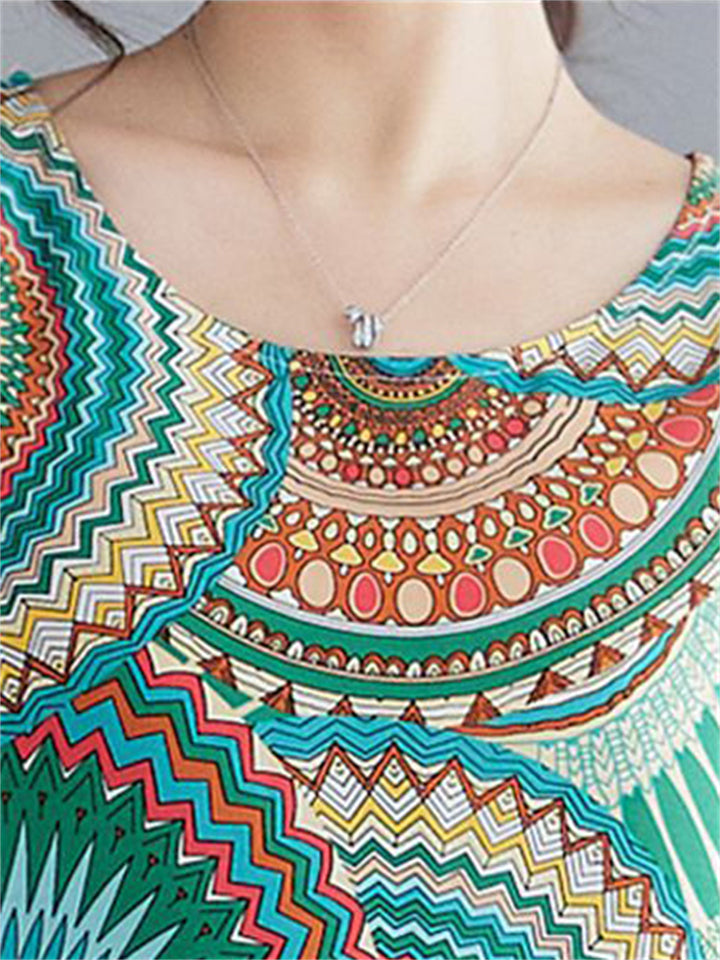 Women's Trendy Ethnic Holiday Style Print V Neck Maxi Dress