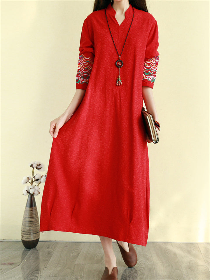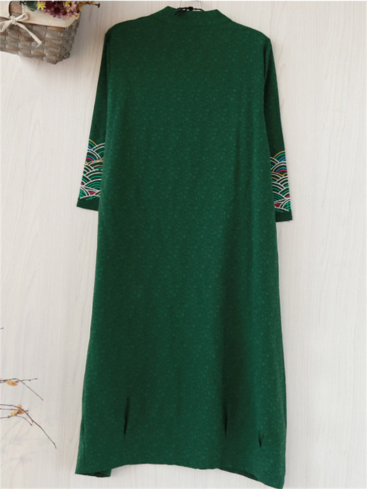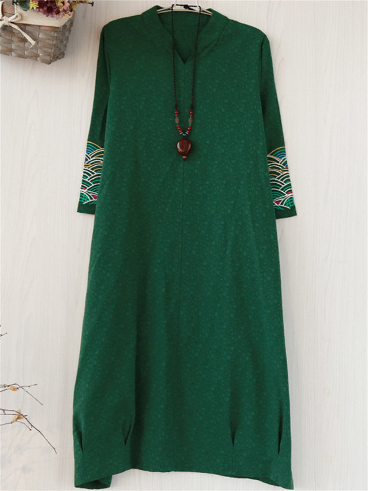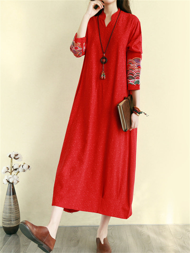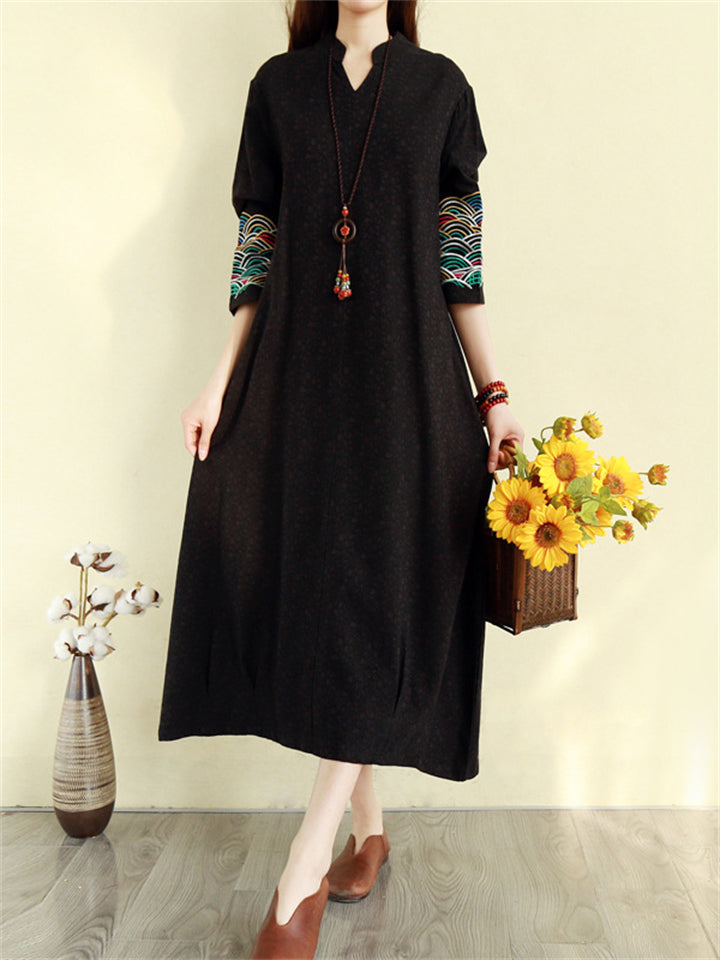 Ethnic Colorful Cloud Embroidery Loose Midi Dress for Women