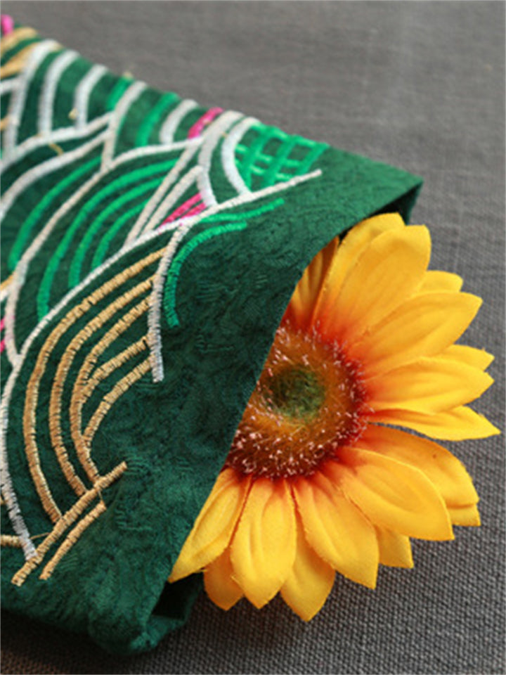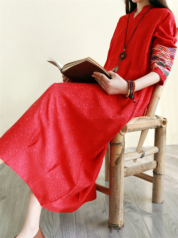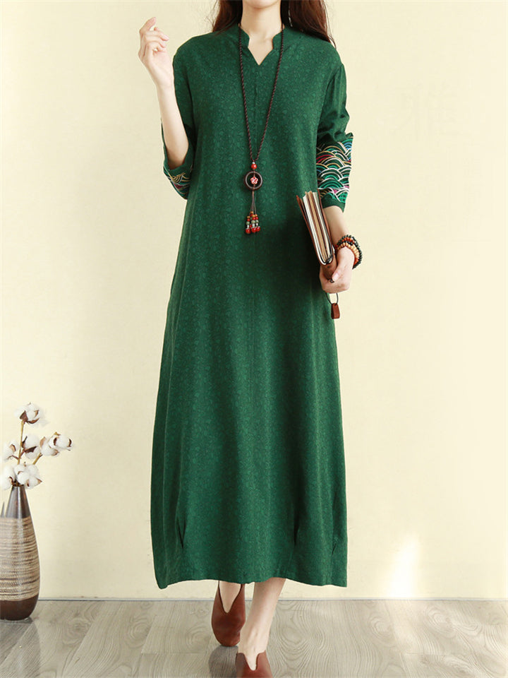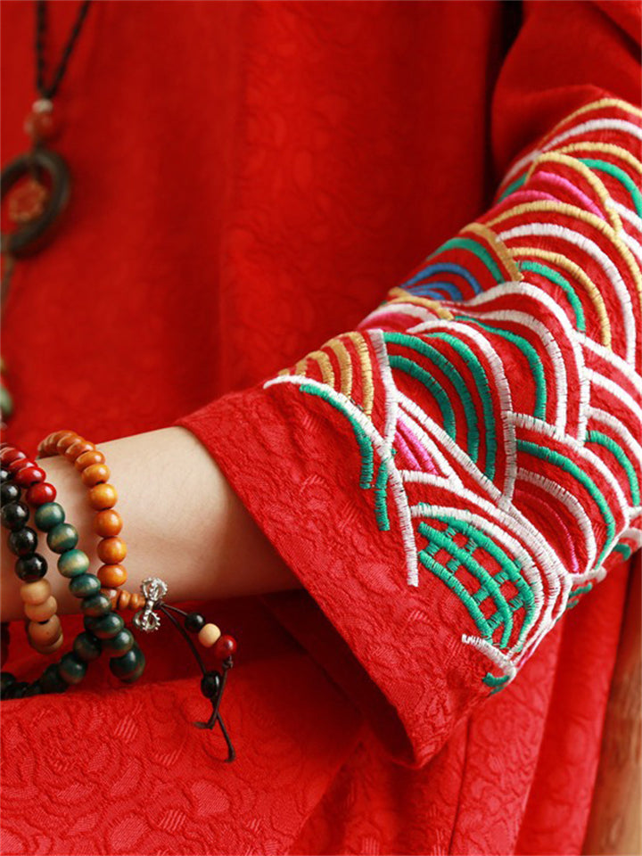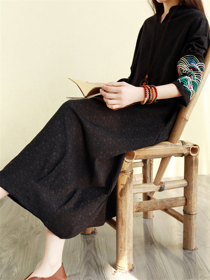 Ethnic Colorful Cloud Embroidery Loose Midi Dress for Women