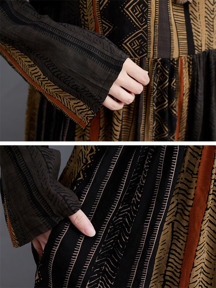Women's Trendy Ethnic Holiday Style Print V Neck Maxi Dress