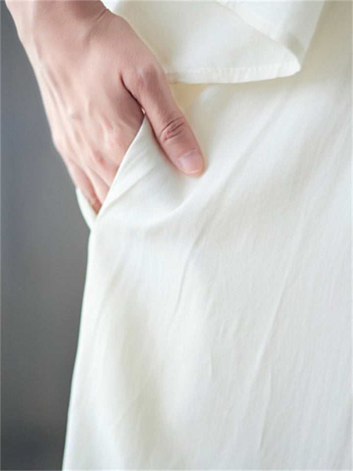 Women's Elegant White Solid Color Loose Button Up Shirt Dress