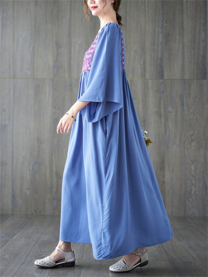 Women's Summer Printed Patchwork Half Sleeve Big Hem Maxi Dress