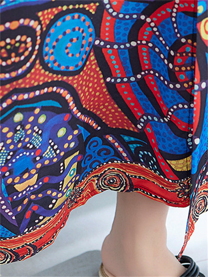 Women's Trendy Ethnic Holiday Style Print V Neck Maxi Dress