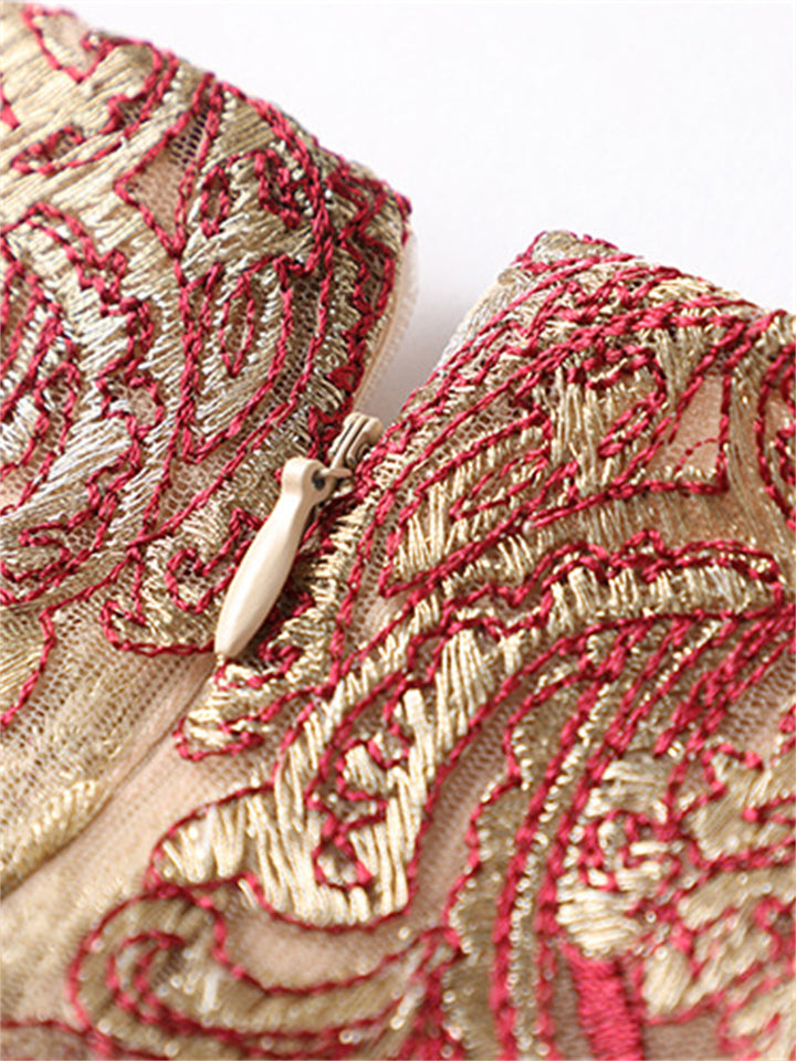 Women's Oriental Style Elegant Print Patchwork Sleeveless Dress