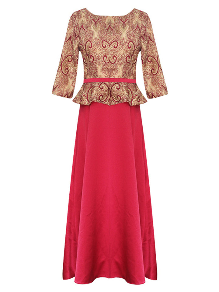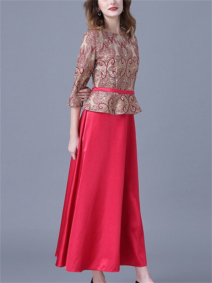 Women's Summer Printed Patchwork Half Sleeve Big Hem Maxi Dress