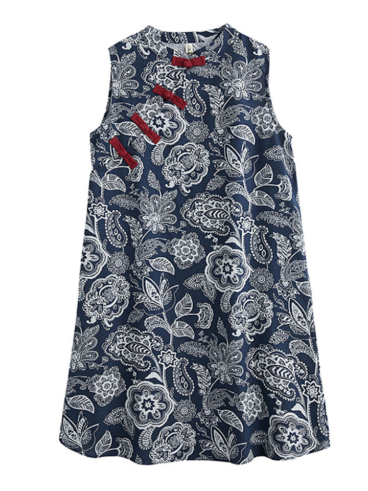 Women's Oriental Style Elegant Print Patchwork Sleeveless Dress