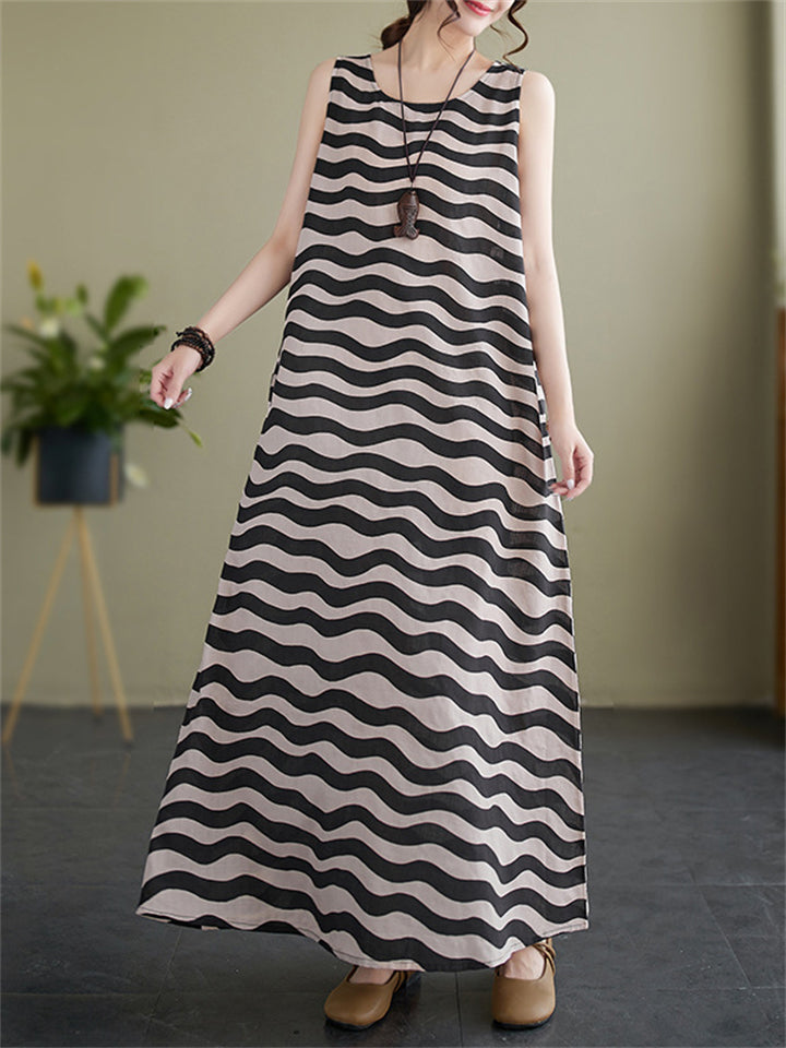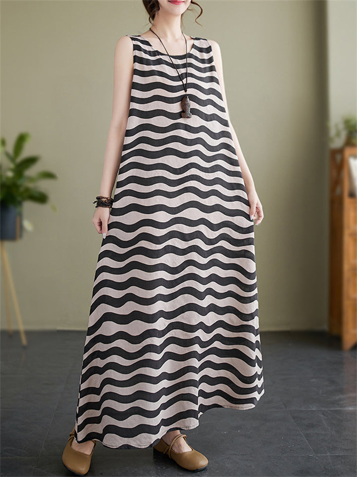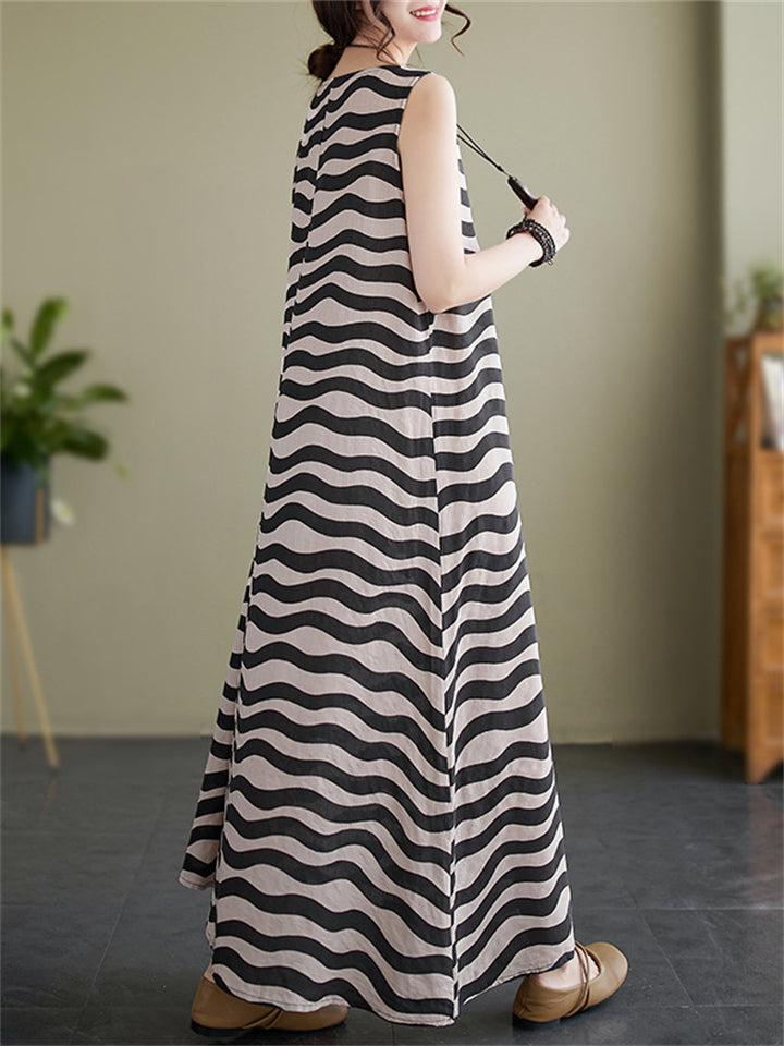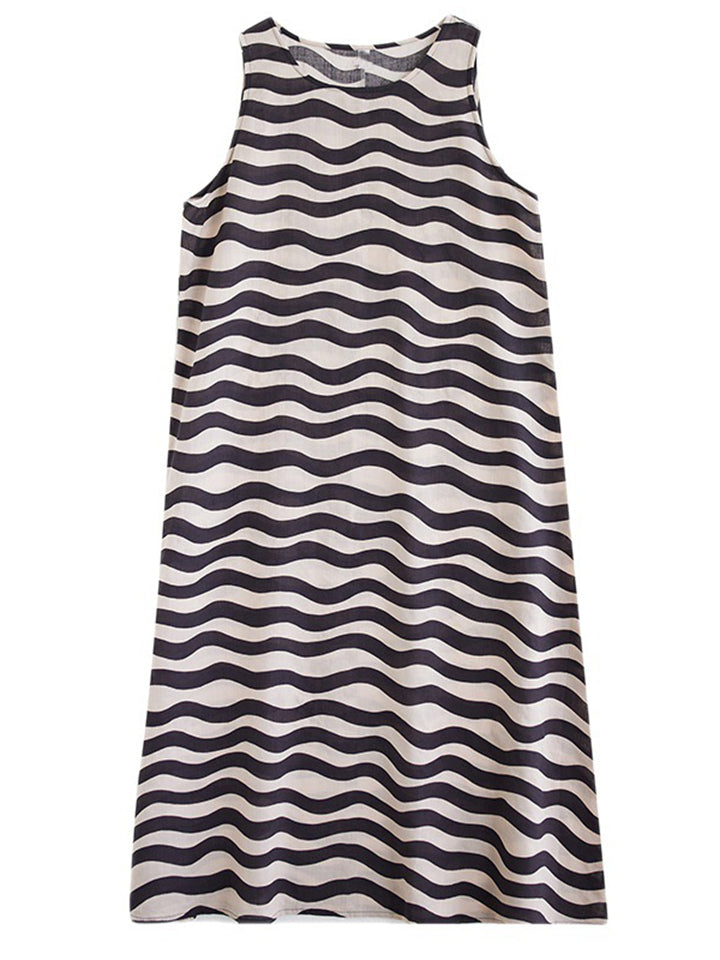 Female Gentle Wavy Striped Printed Sleeveless Tank Dress