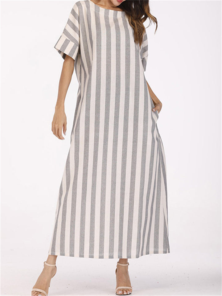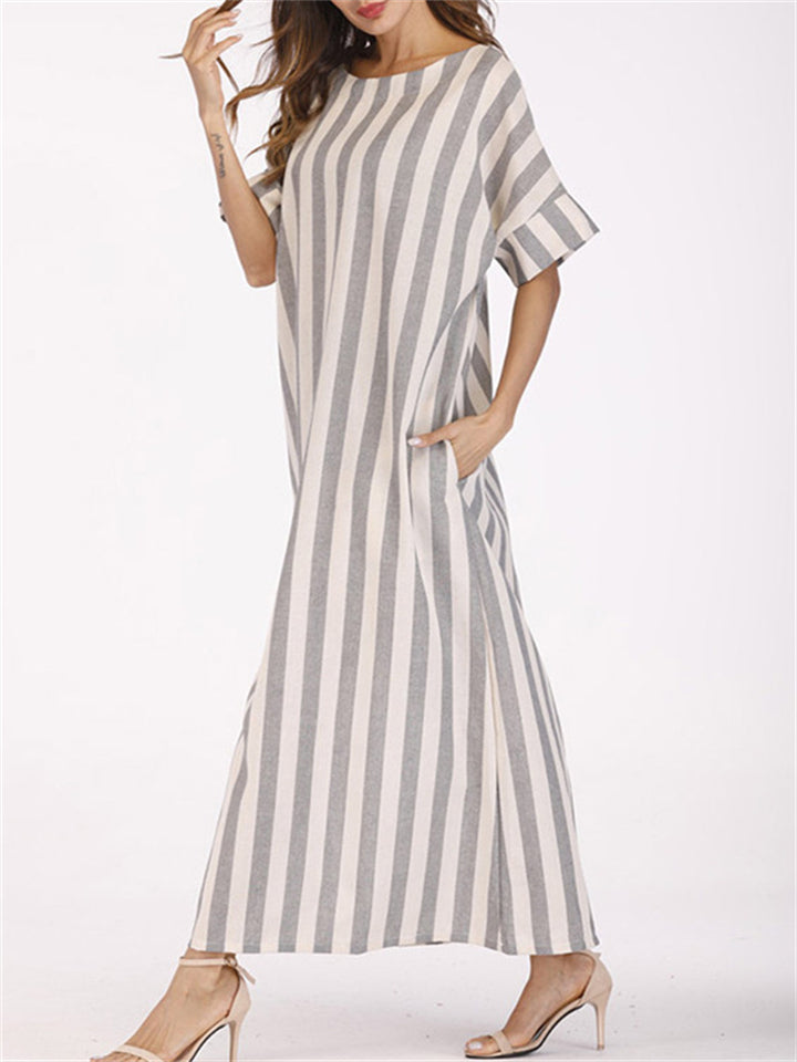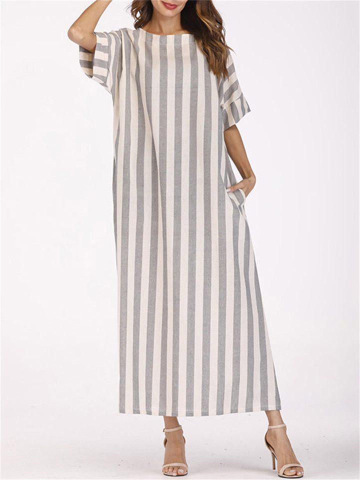 Women's Casual Contrast Color Striped Pockets Button Up Shirt Dress