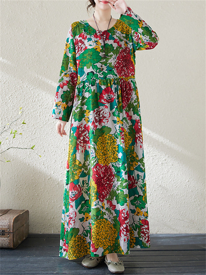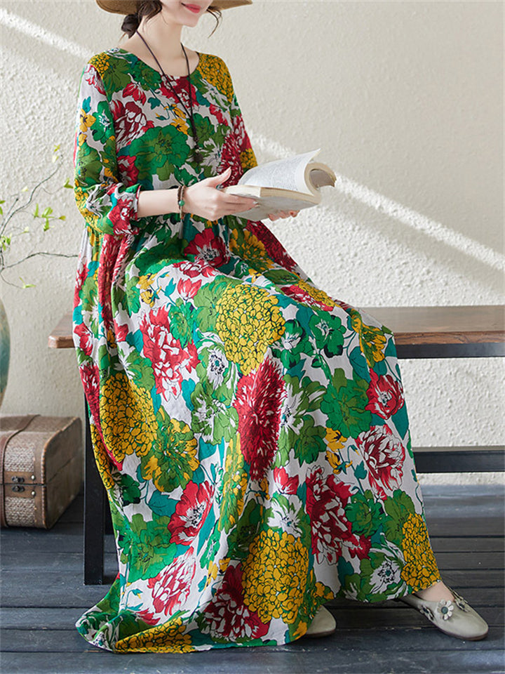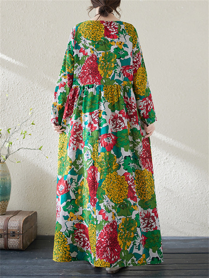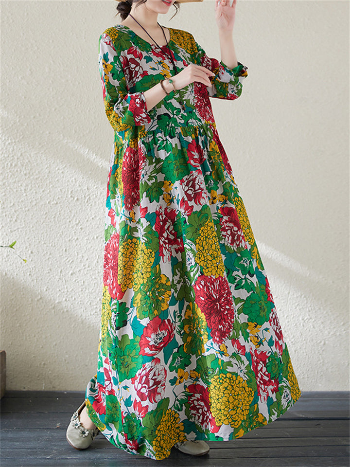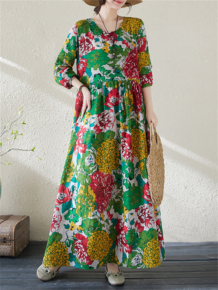 Women's Trendy Ethnic Holiday Style Print V Neck Maxi Dress