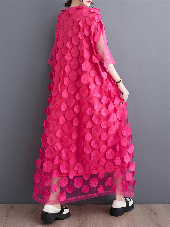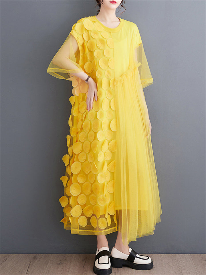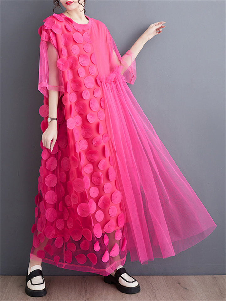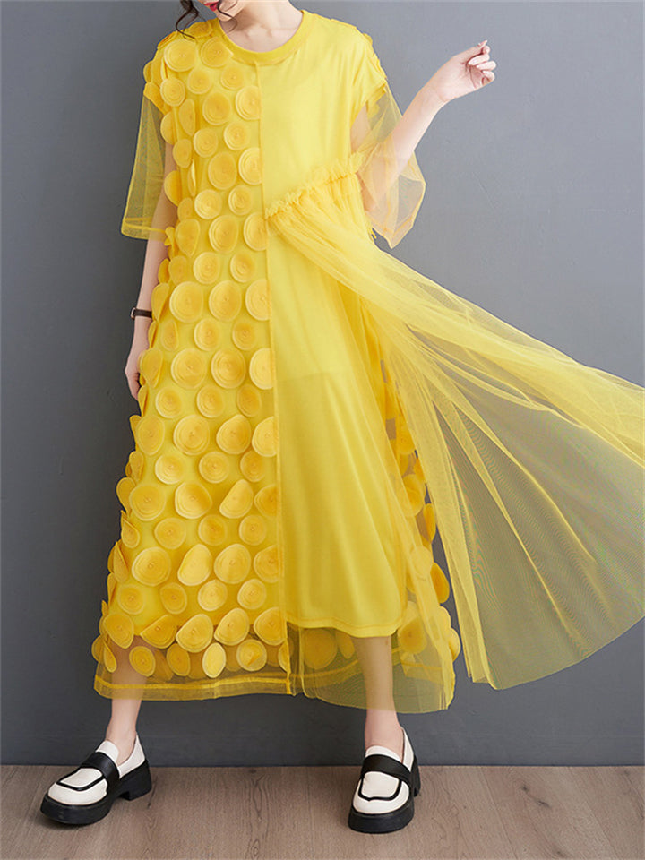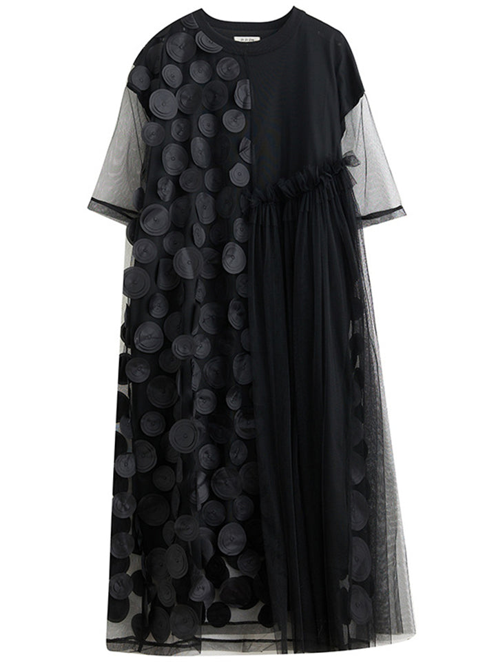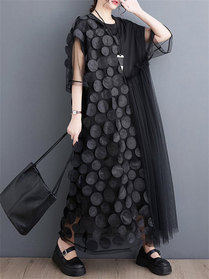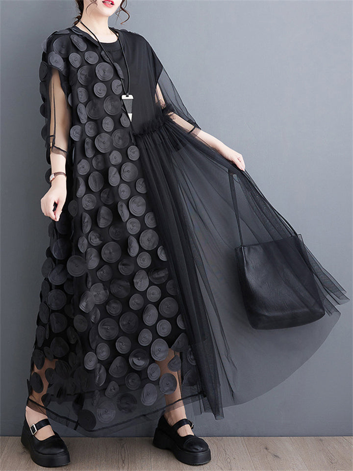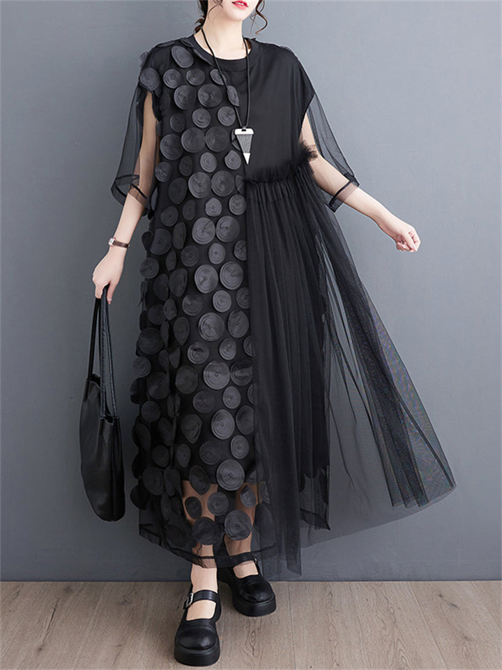 Female Polka Dot Mesh Splicing Irregular Mid-Length Dress