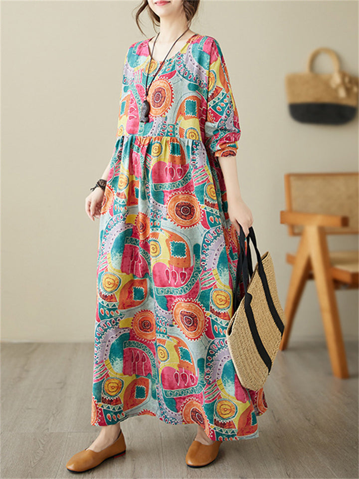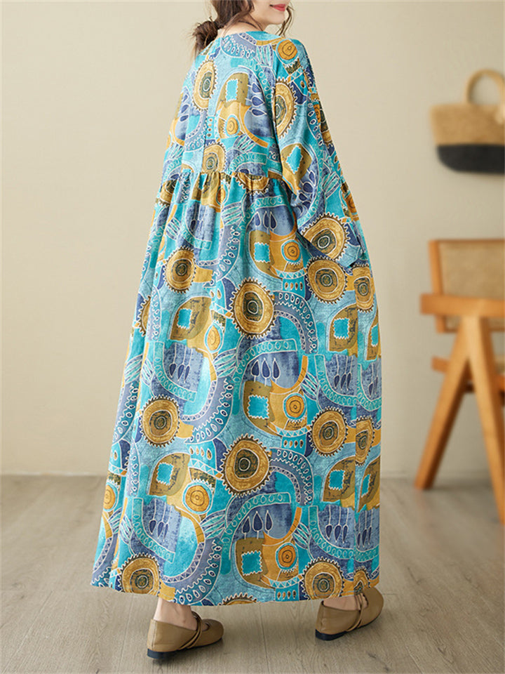 Women's Trendy Ethnic Holiday Style Print V Neck Maxi Dress
