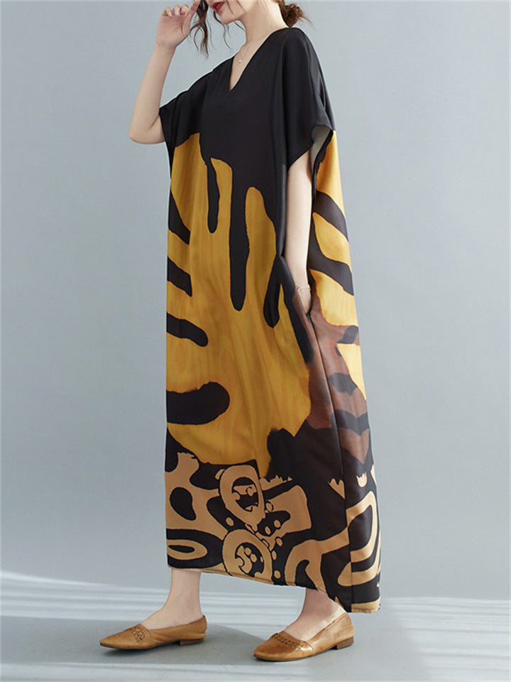 Women's Trendy Ethnic Holiday Style Print V Neck Maxi Dress
