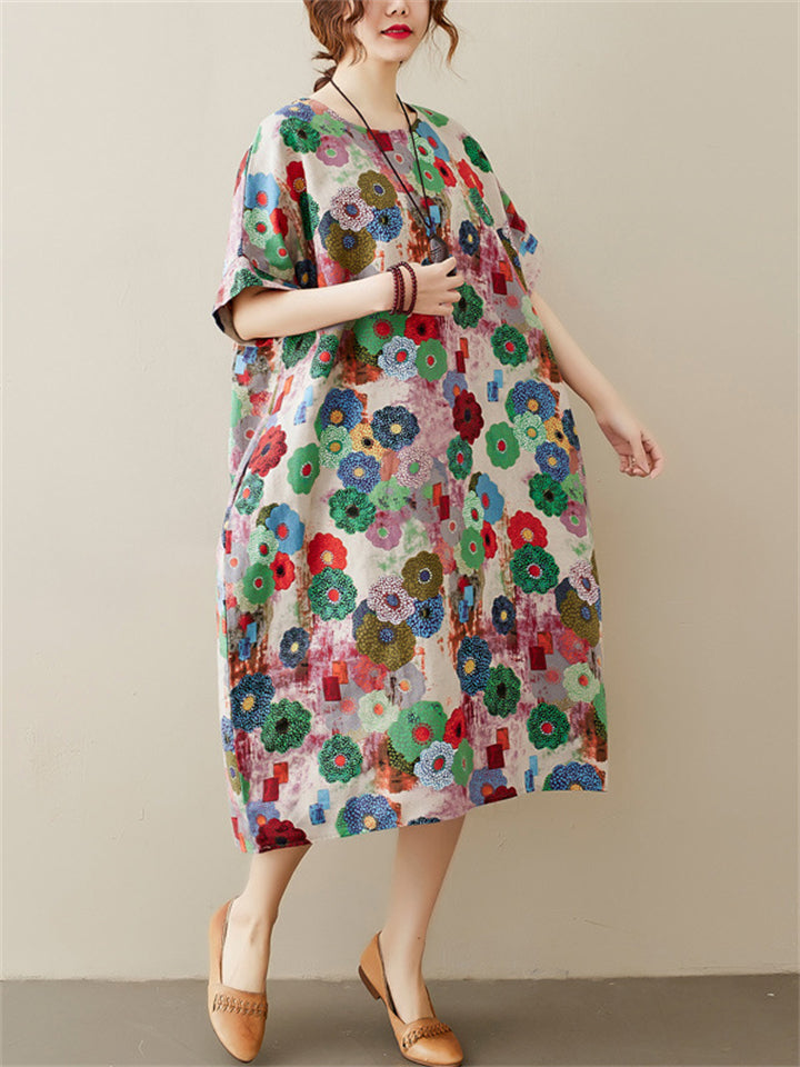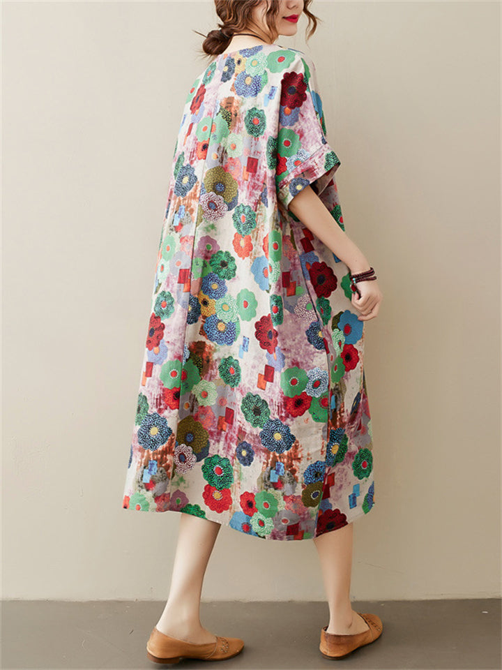 Women's Summer Printed Patchwork Half Sleeve Big Hem Maxi Dress
