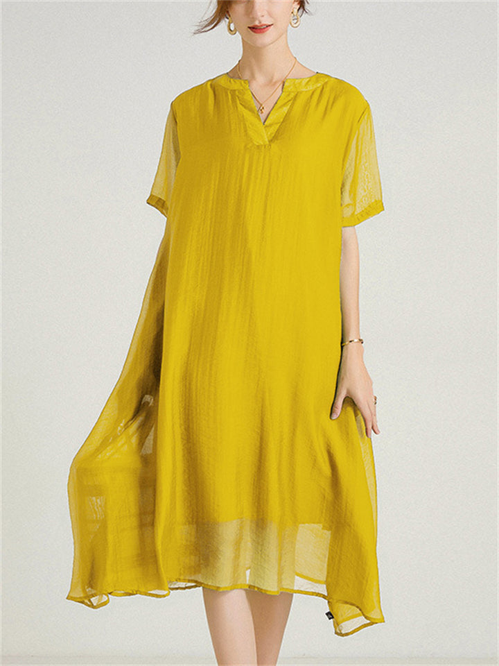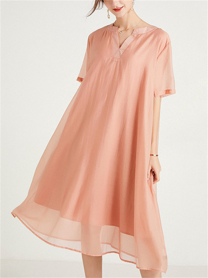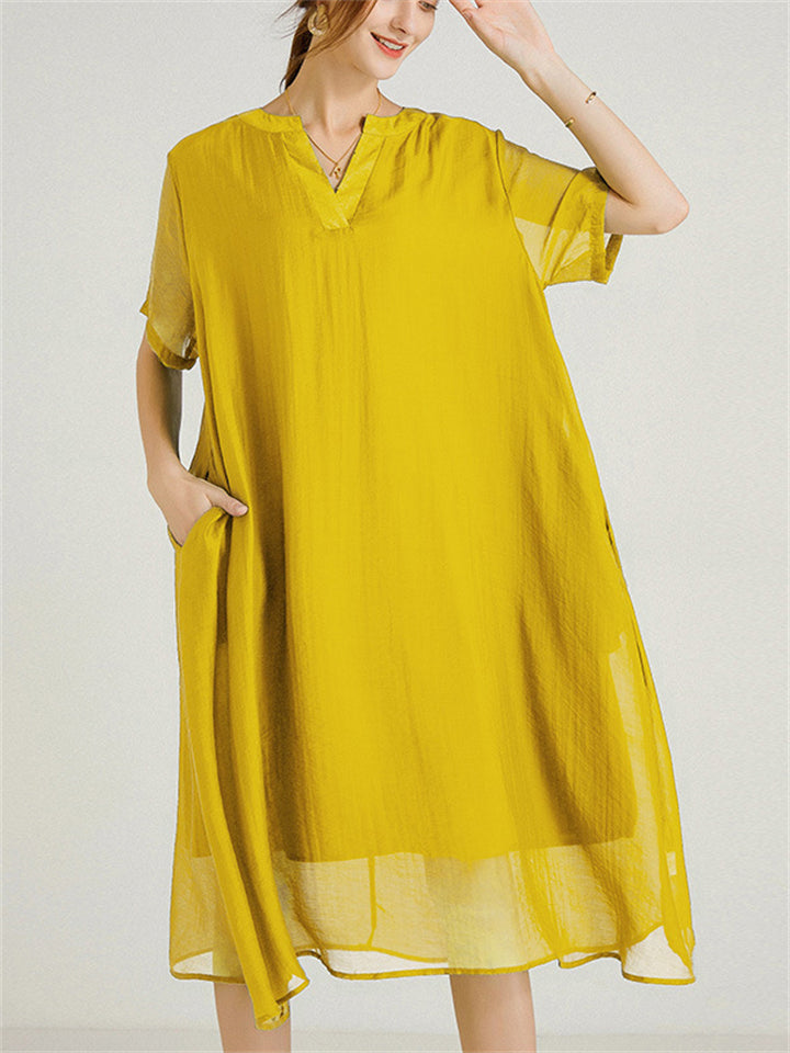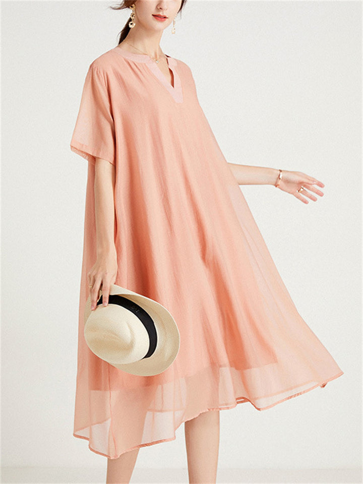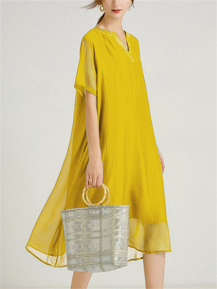 Flowy V Neck Double-Layer Tencel Dress for Women