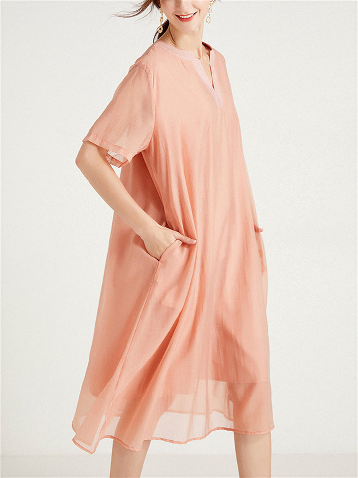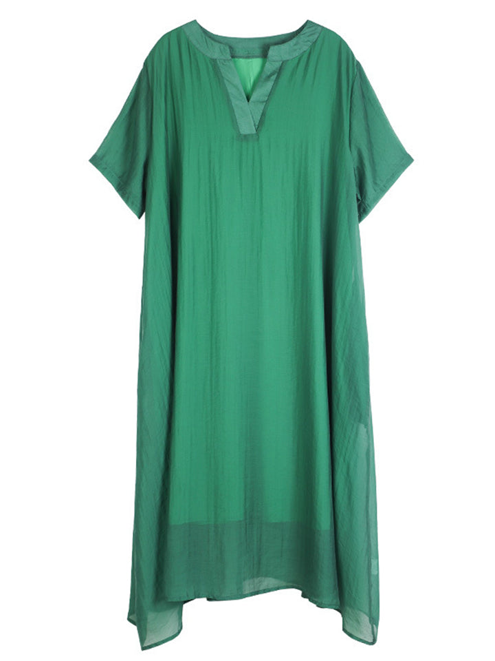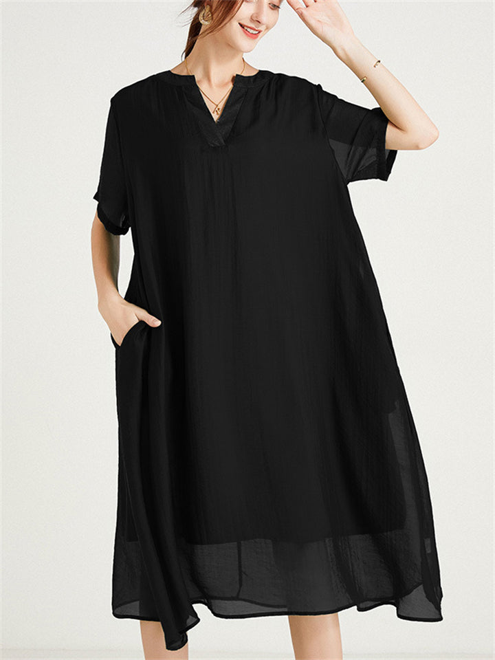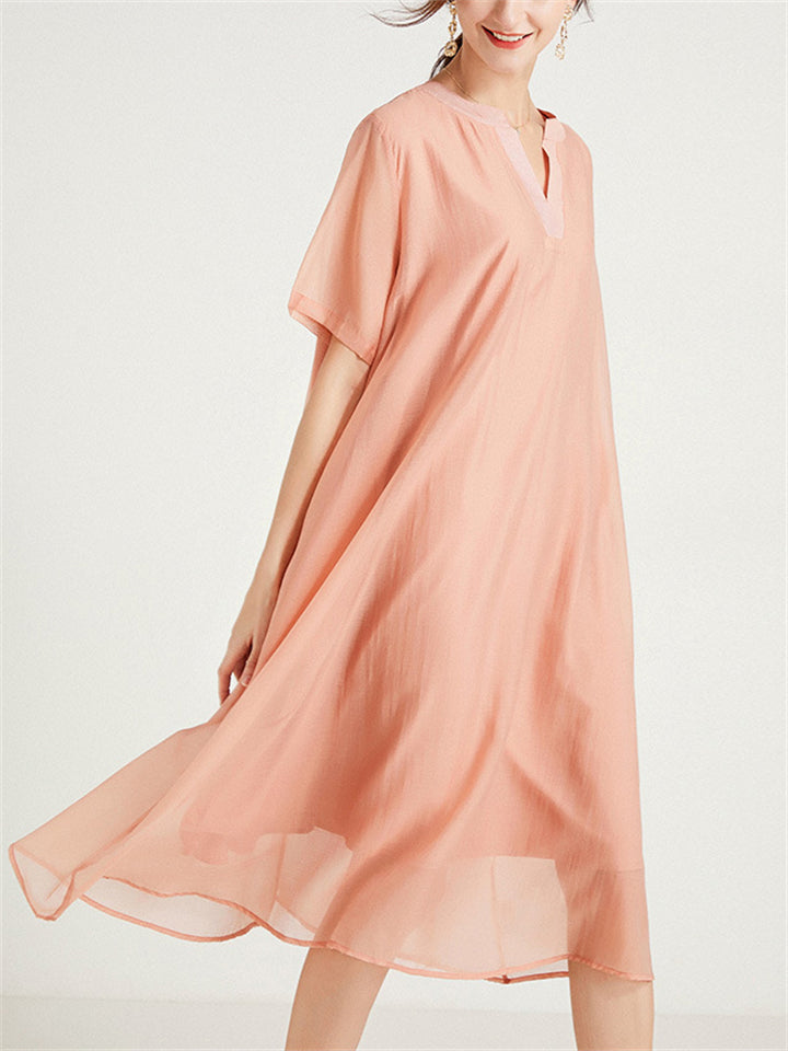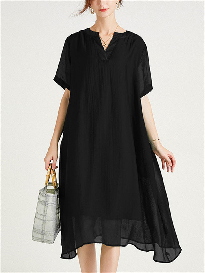 Flowy V Neck Double-Layer Tencel Dress for Women