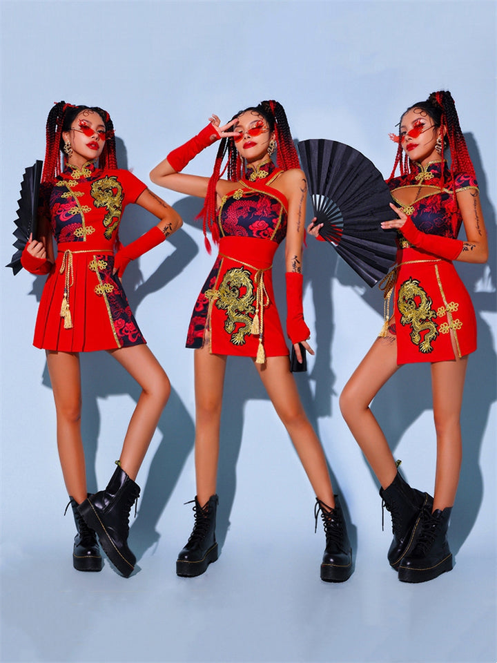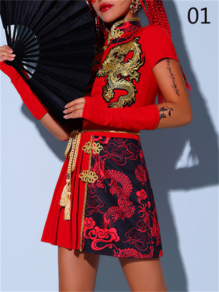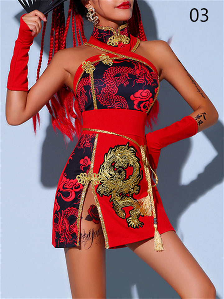 Hip Hop Ethnic Jazz Dance Dragon Print Dress for Women