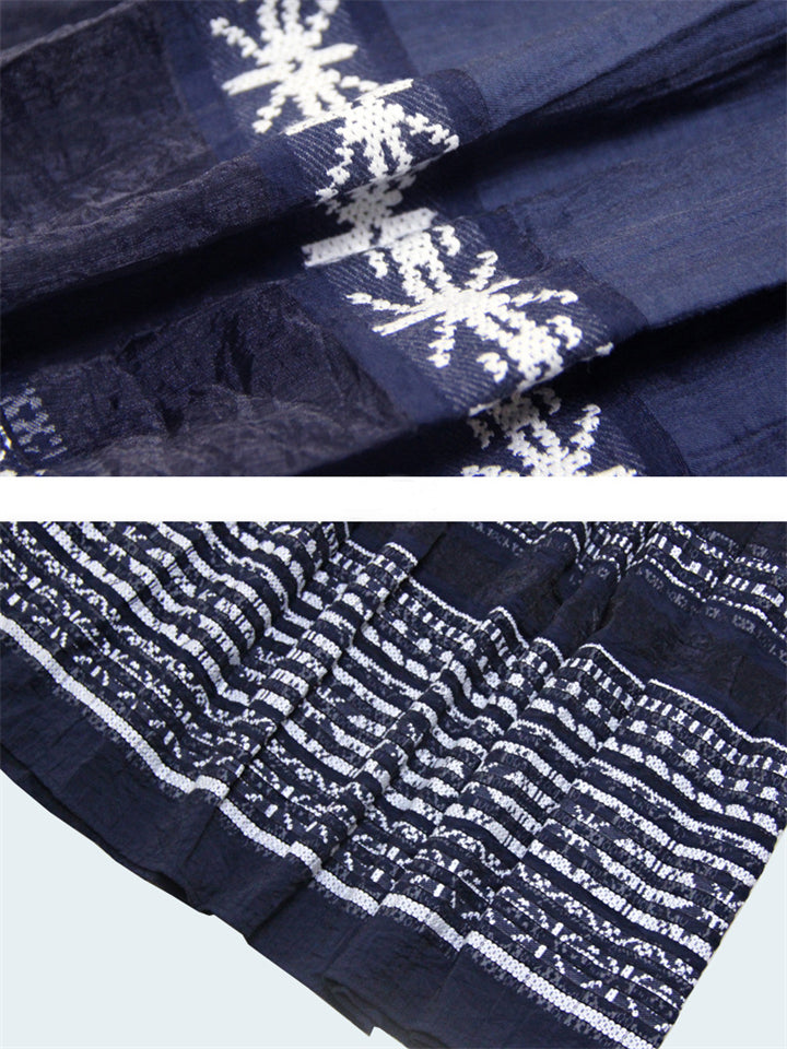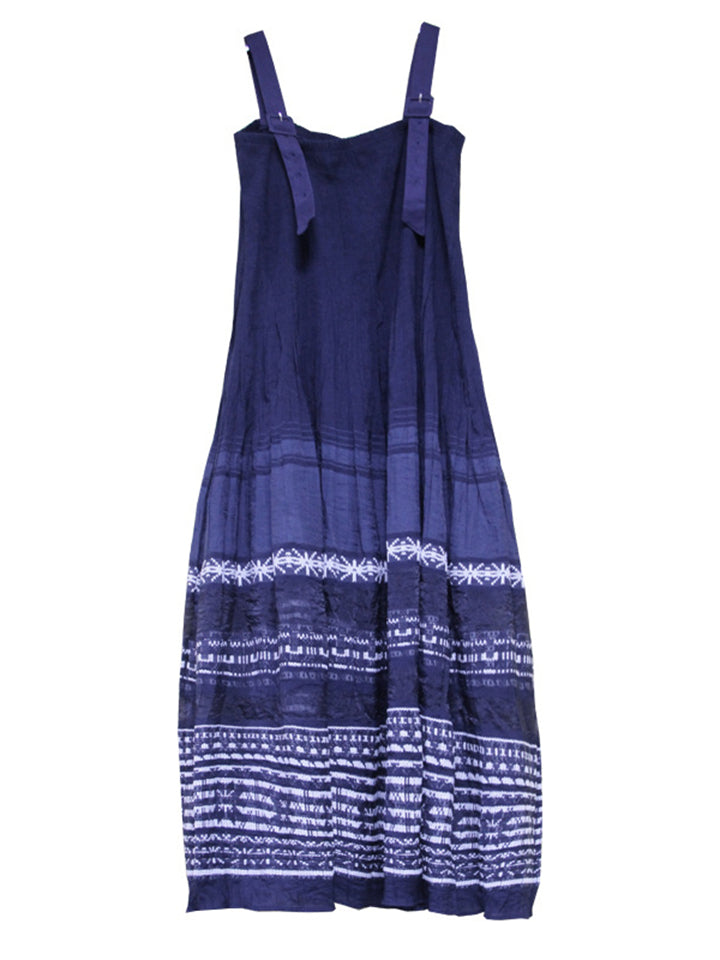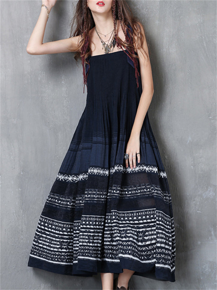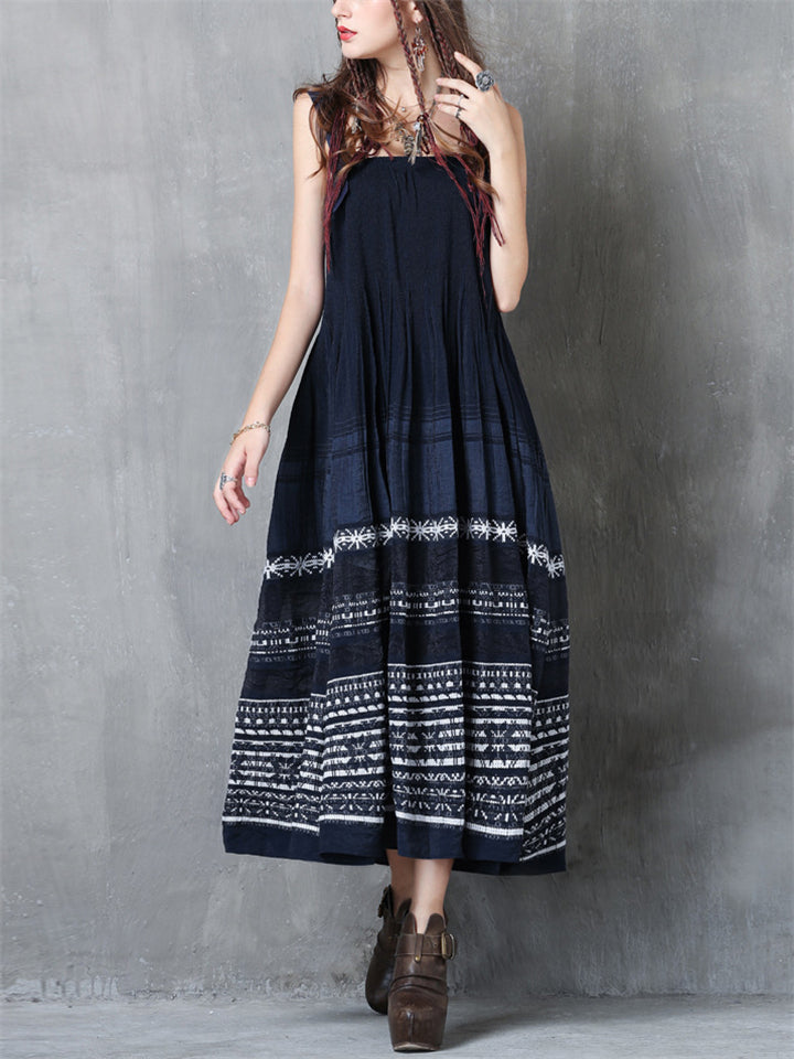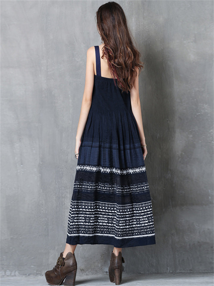Ladies Bohemian Style Embroidery Sleeveless Pleated Swing Dress