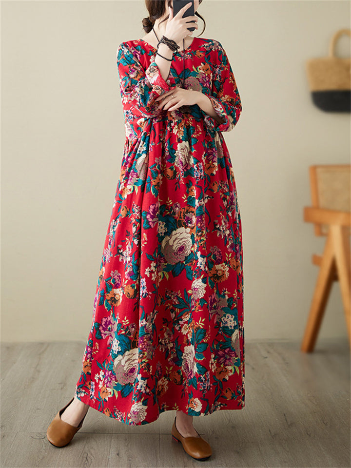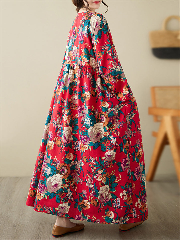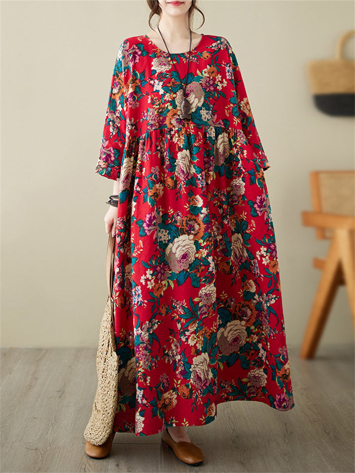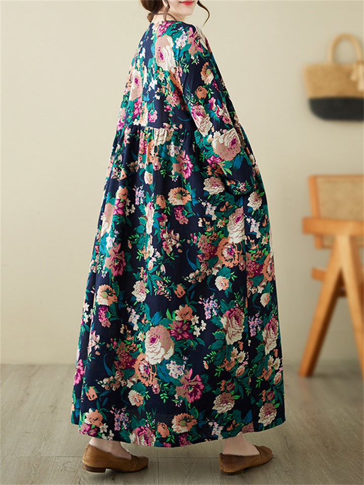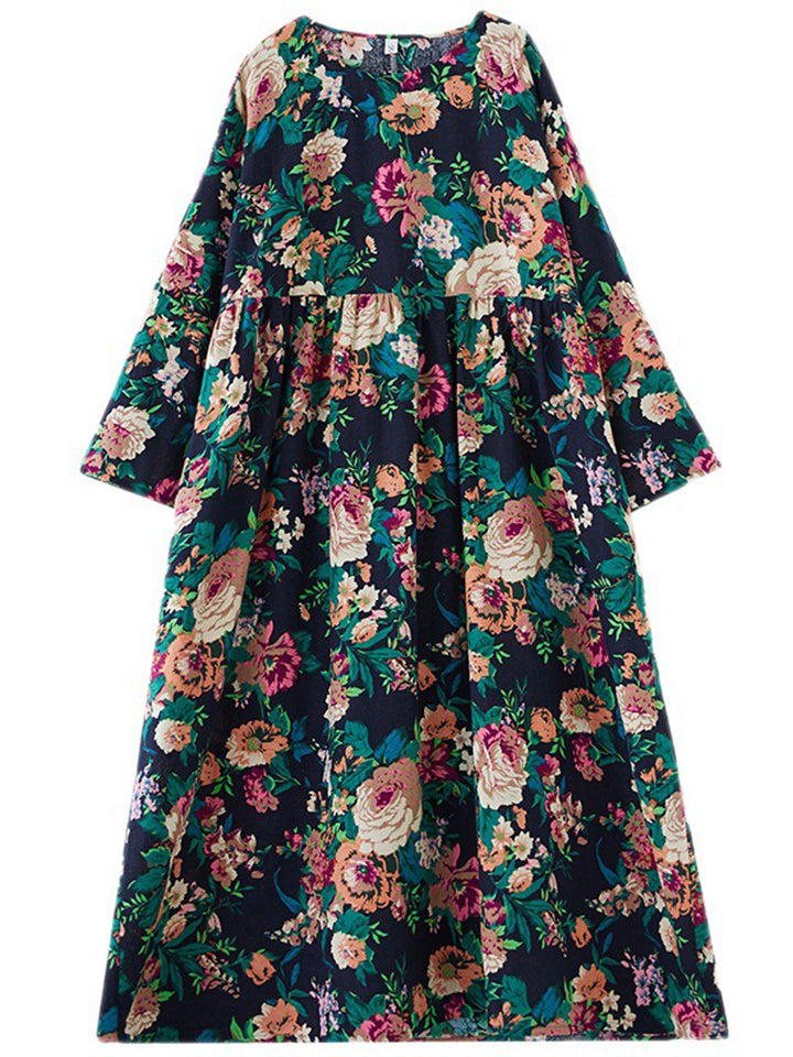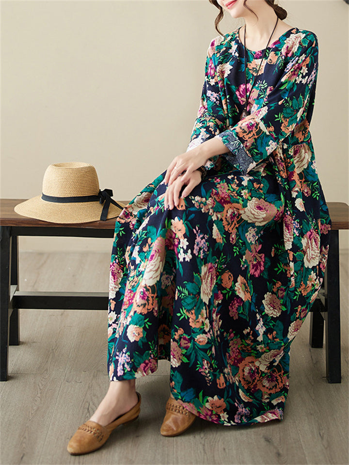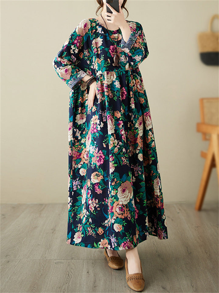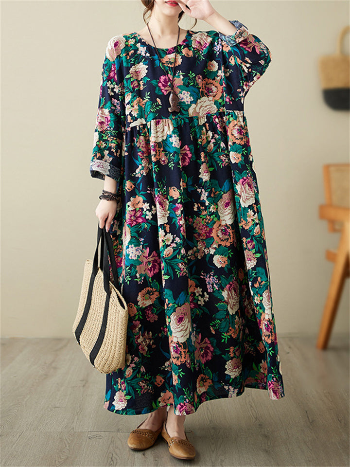 Ladies French Romantic Floral Print Big Size Swing Dress