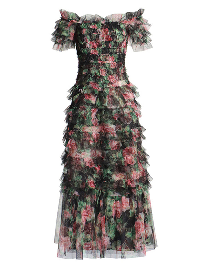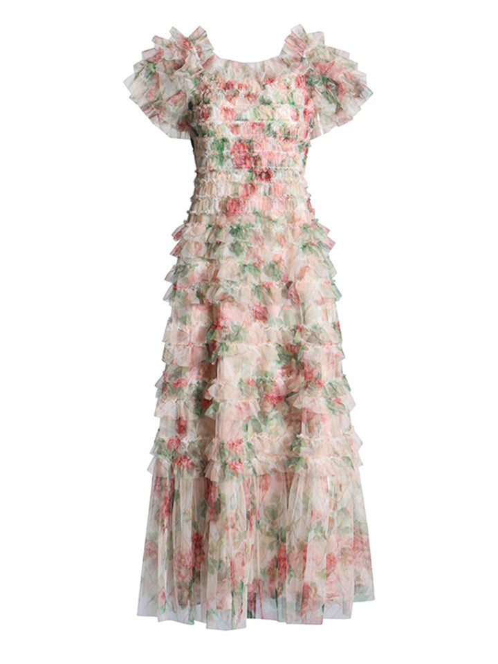 Ladies Stylish Floral Printed Mesh Dress for Vacation