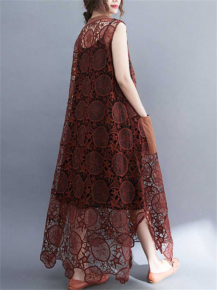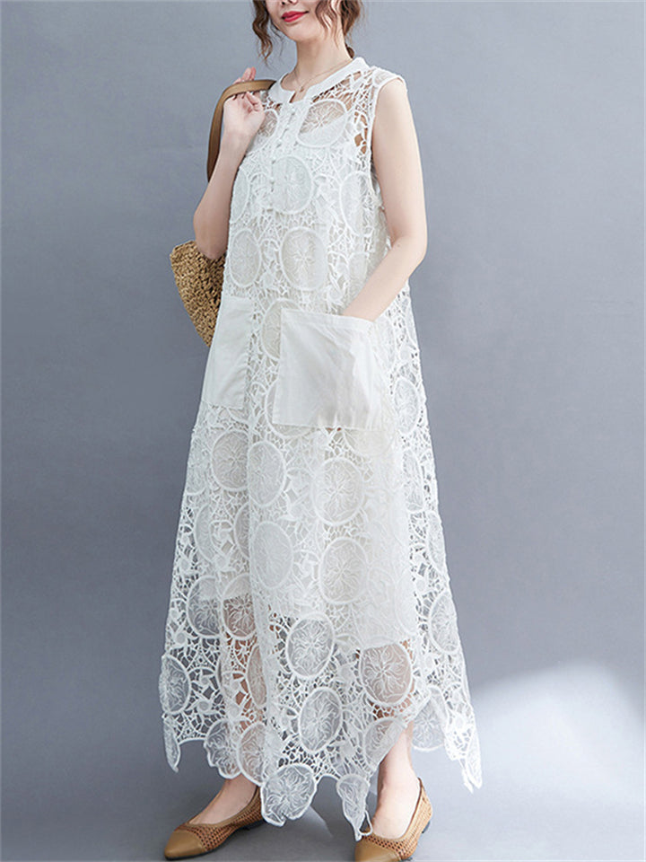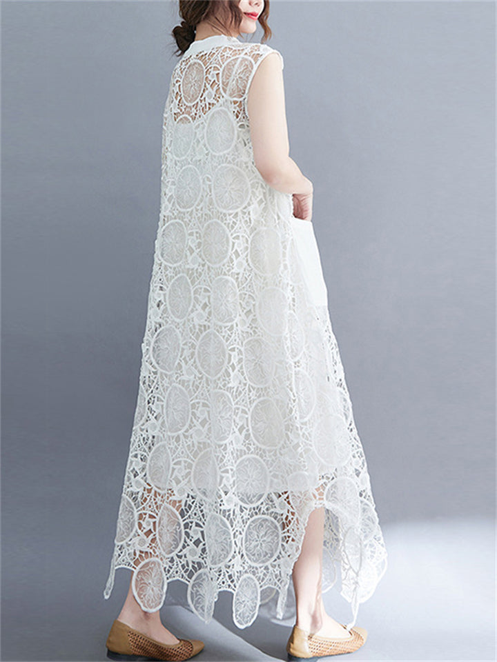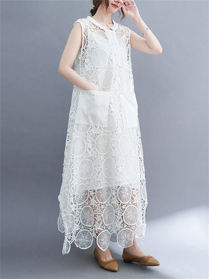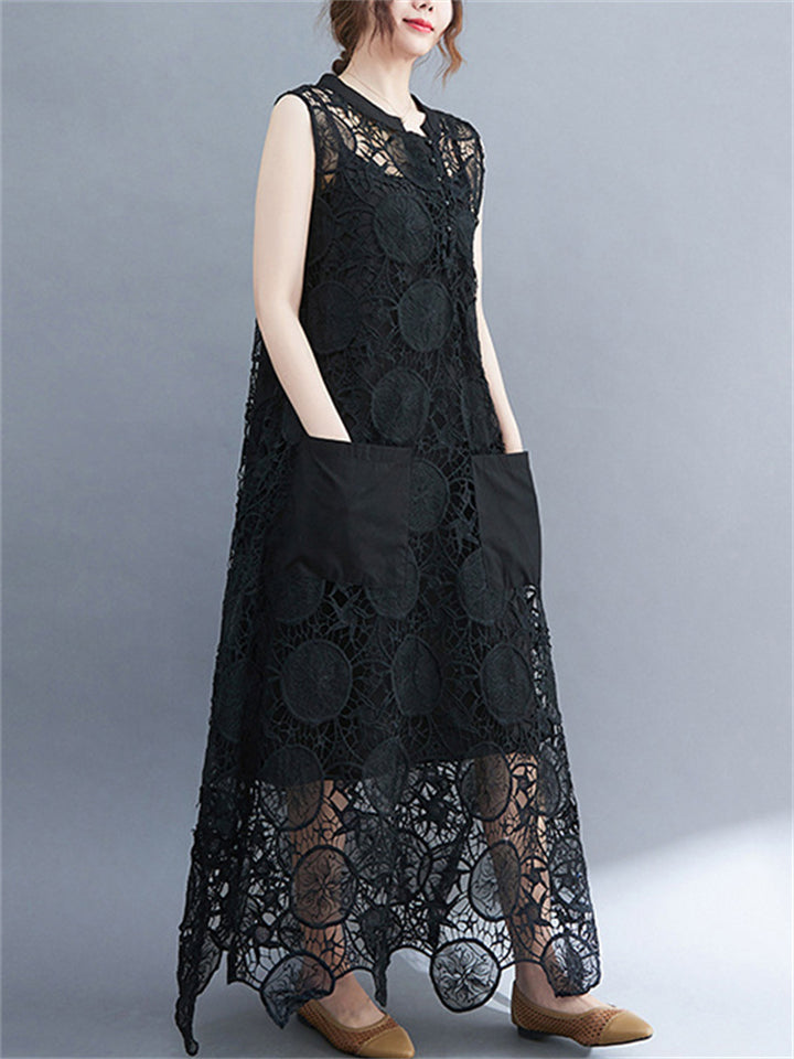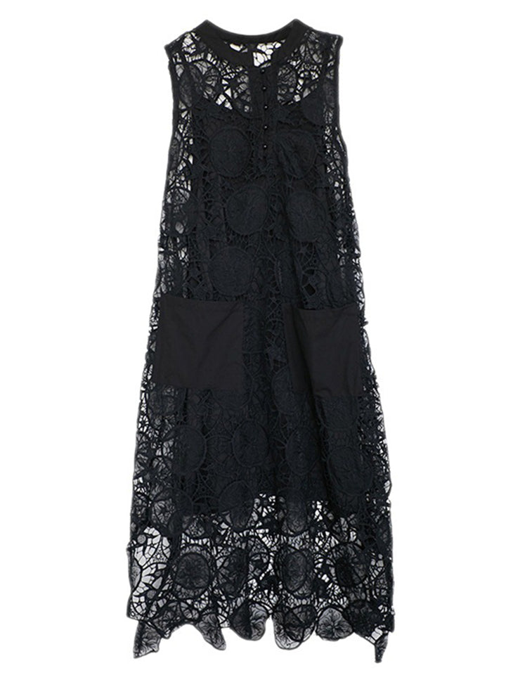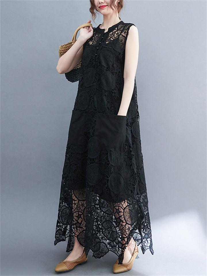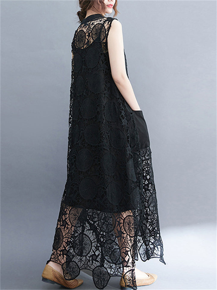 Ladies Temperament Large Size Cutout Lace Tank Dress