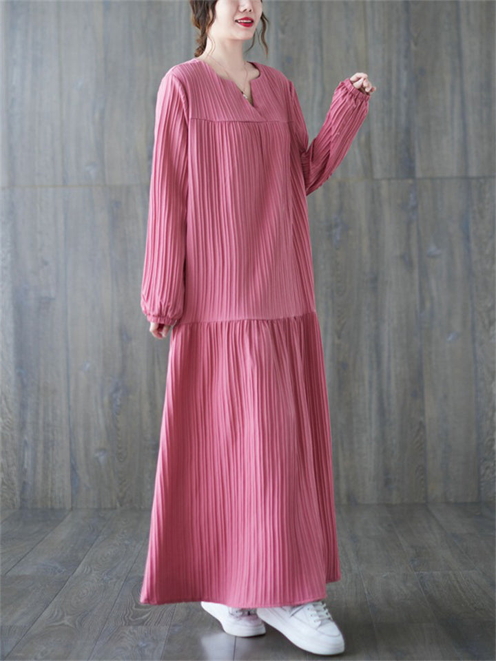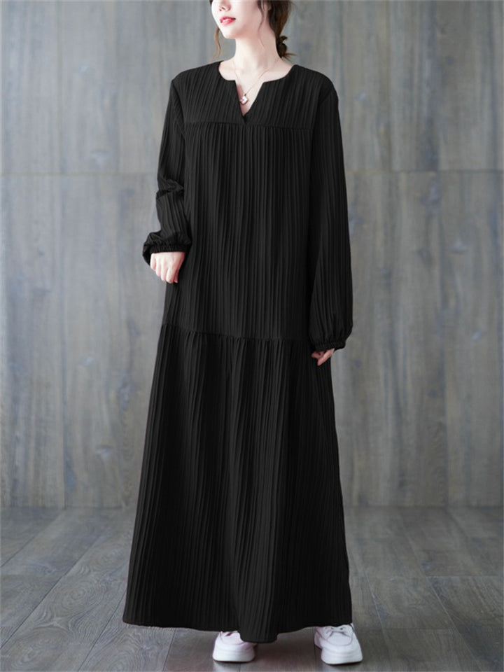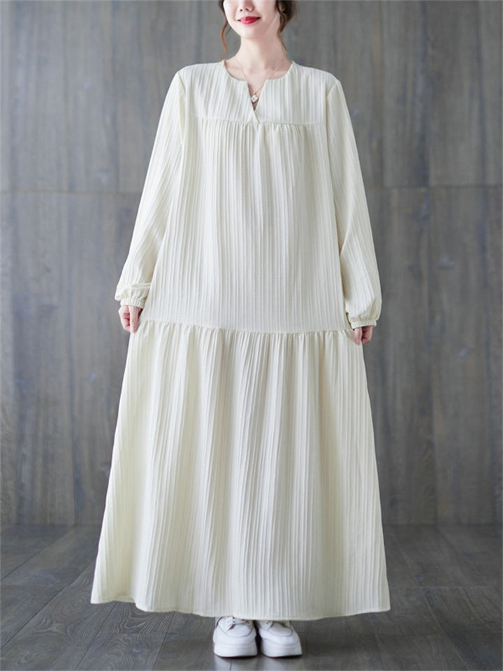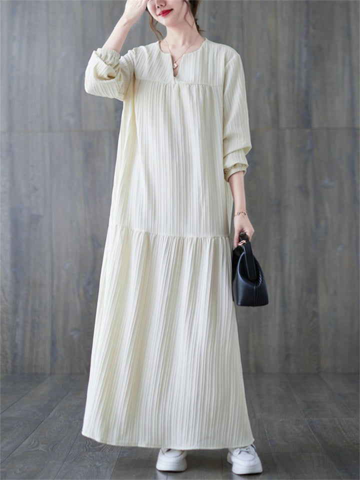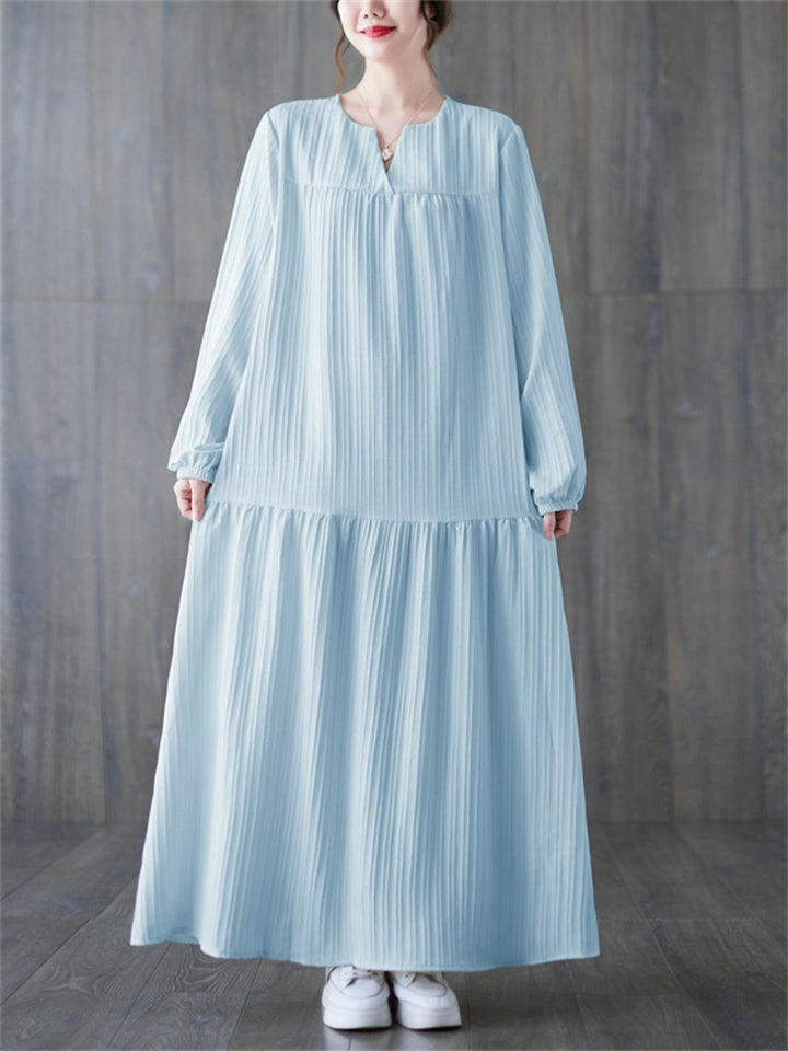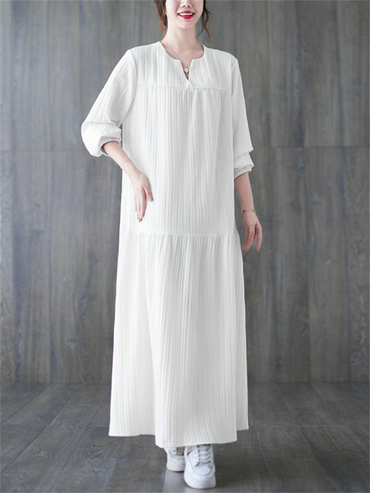 Women's Casual Solid Color Round Neck Double-layer Big Hem Midi Dress