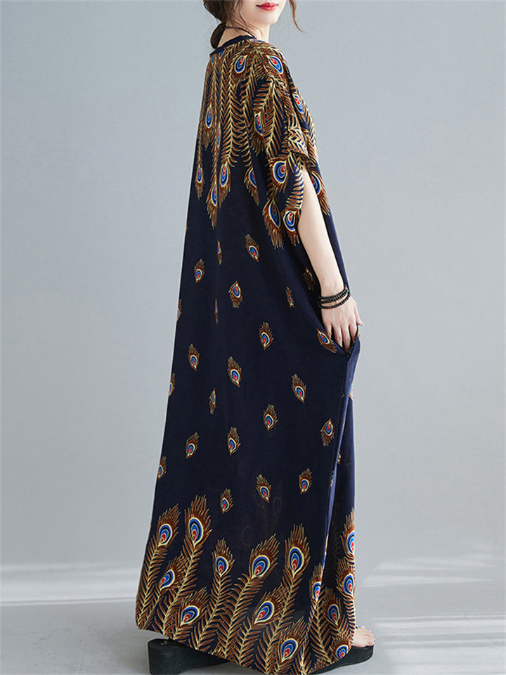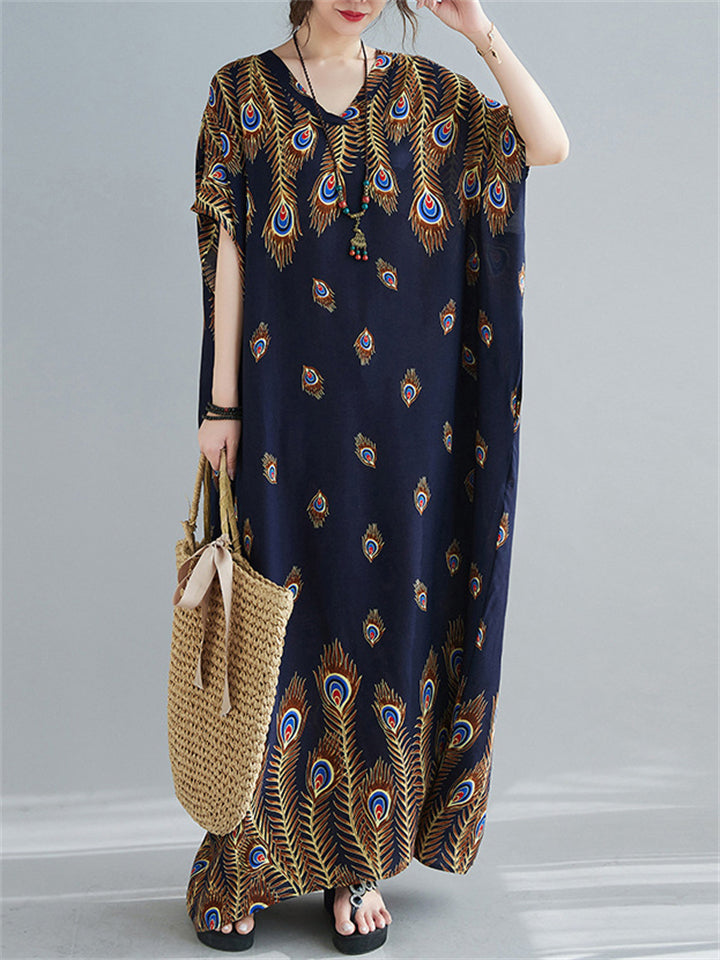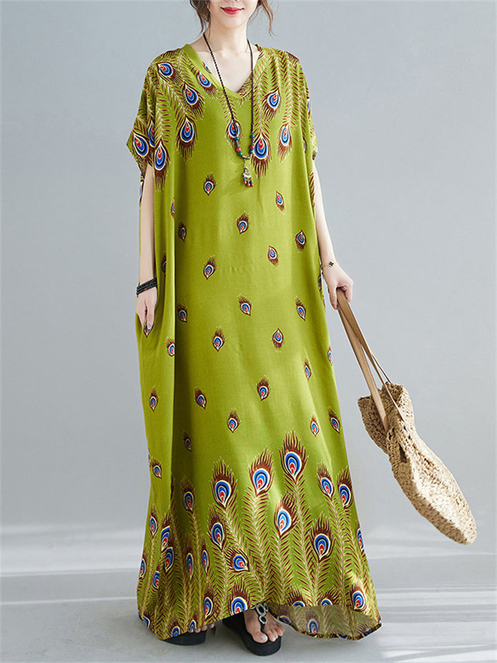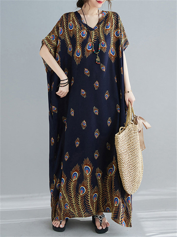 Women's Trendy Ethnic Holiday Style Print V Neck Maxi Dress