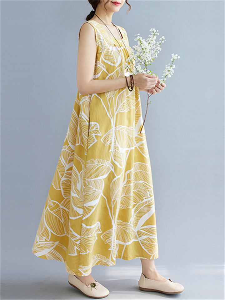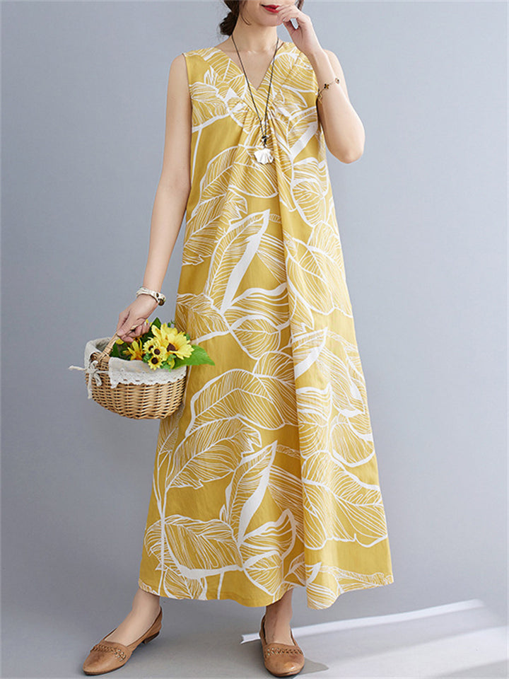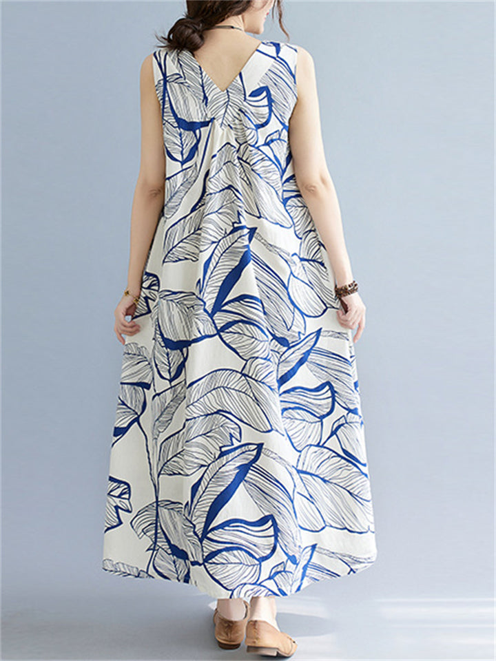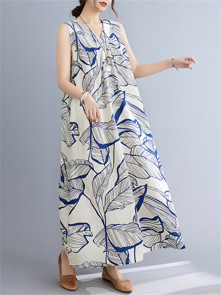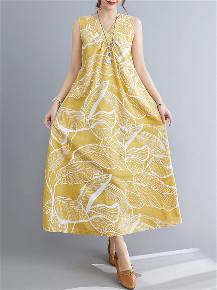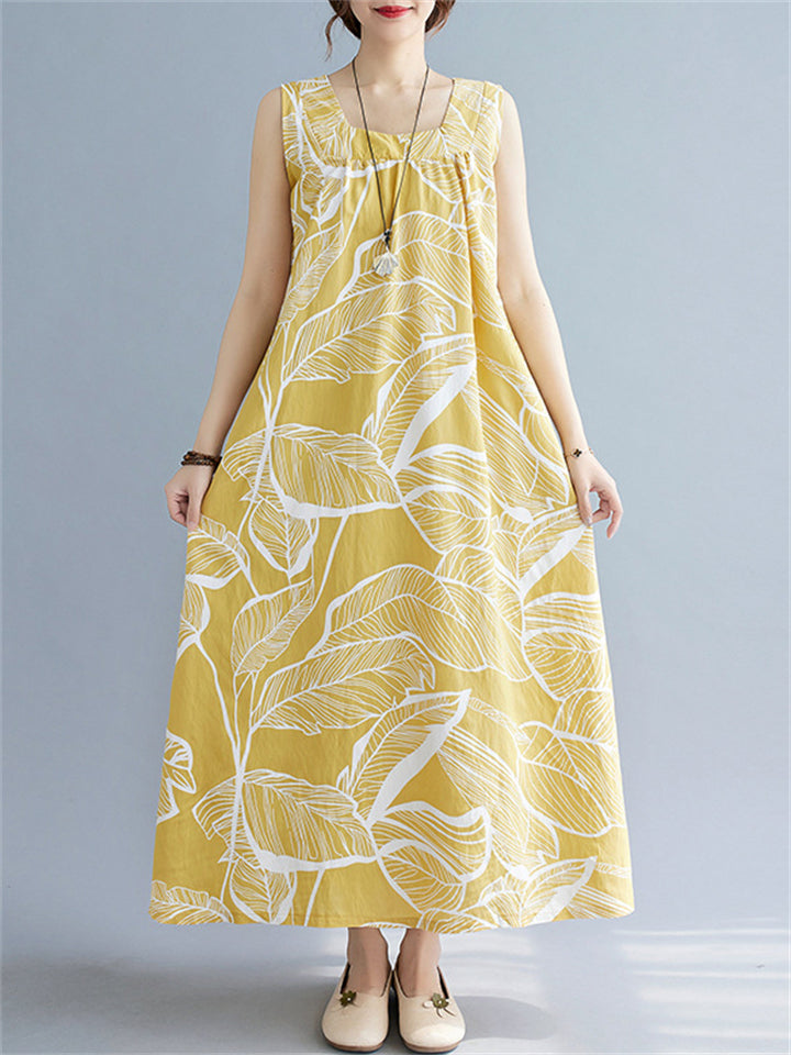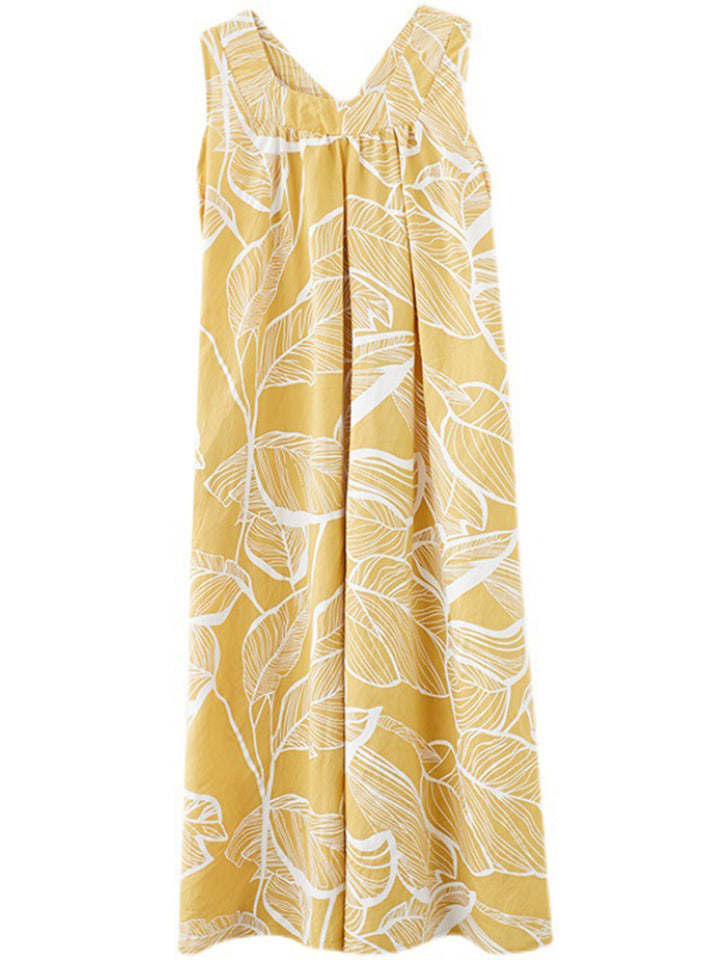 Leaves Print Reversible Sleeveless Dresses for Women