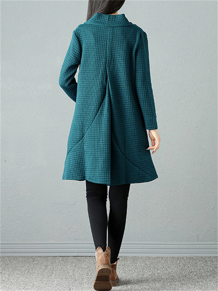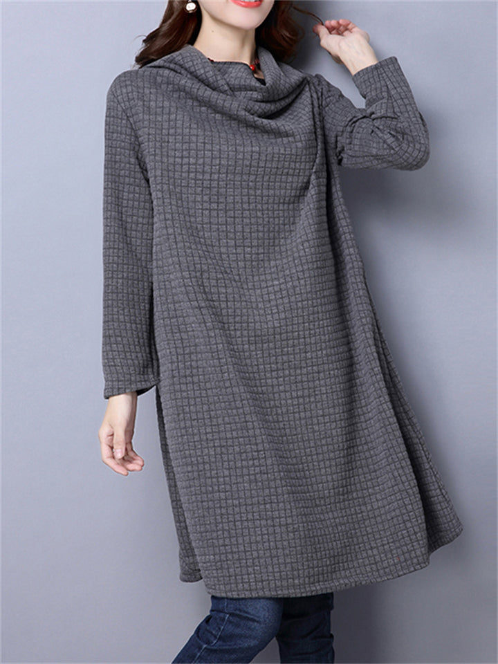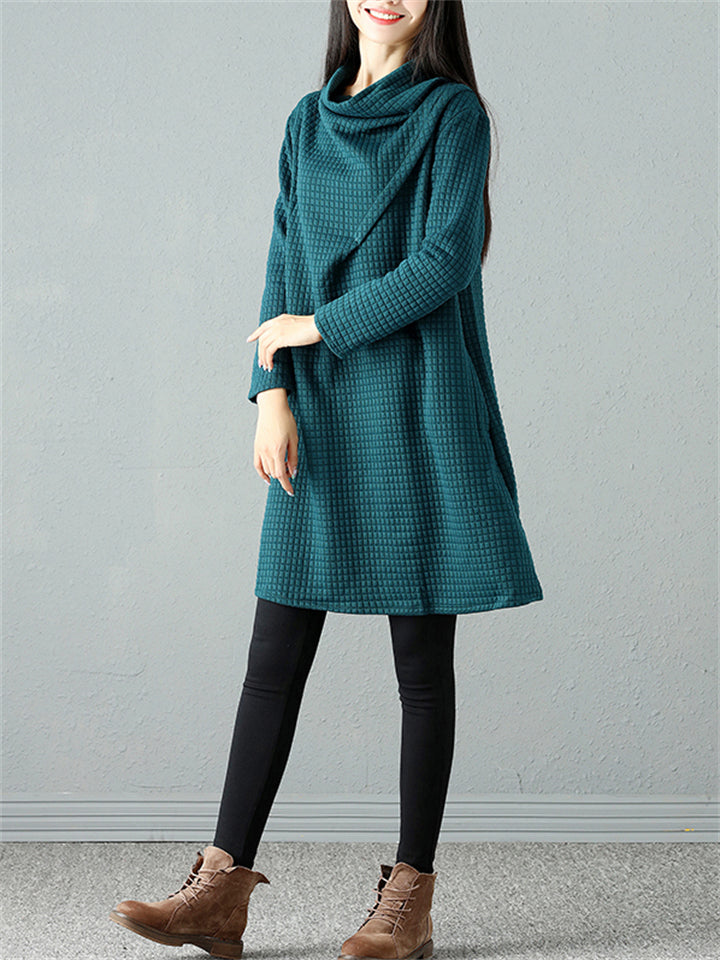 Women's Casual Solid Color Round Neck Double-layer Big Hem Midi Dress