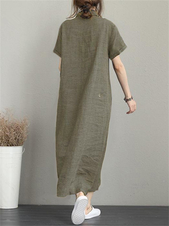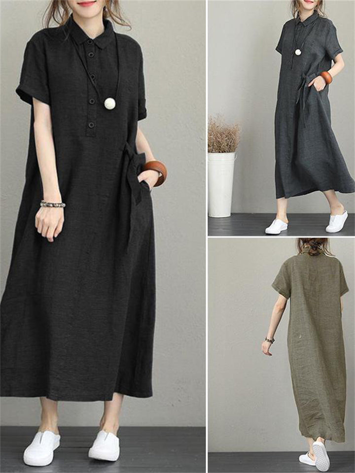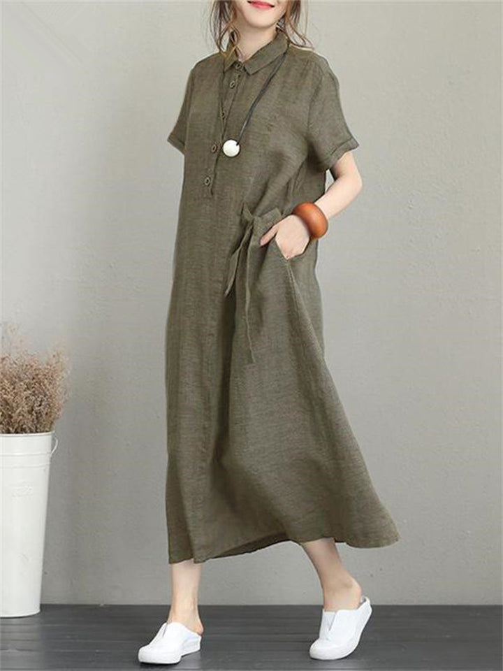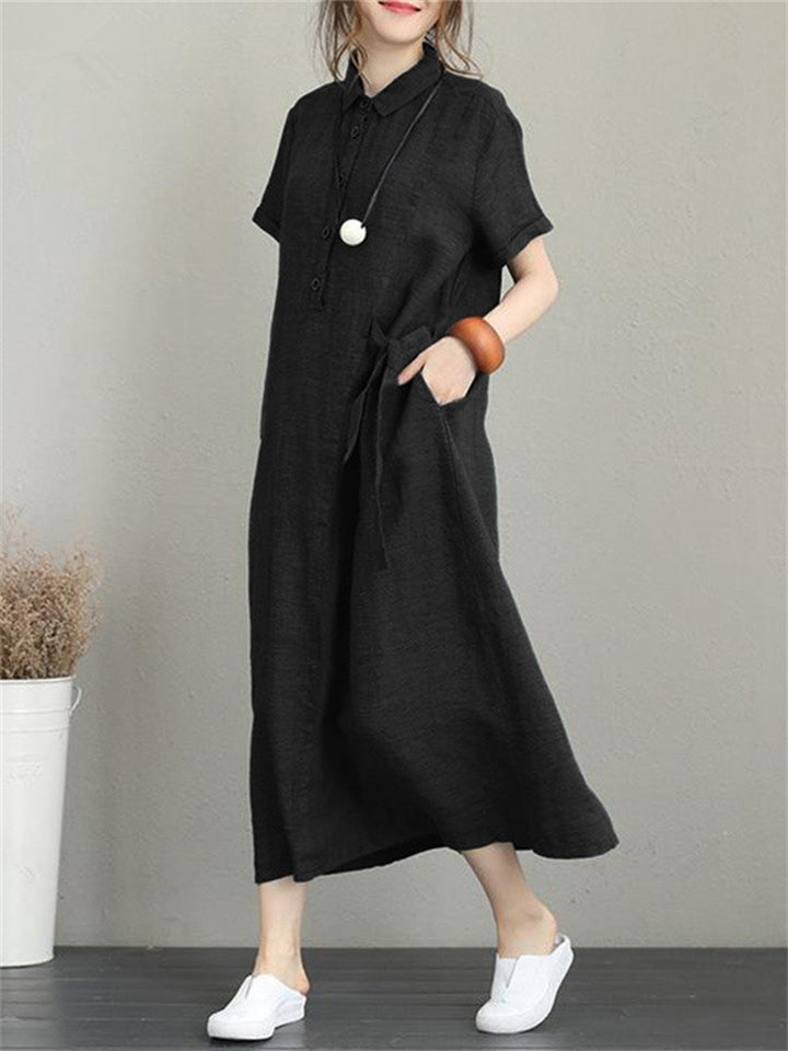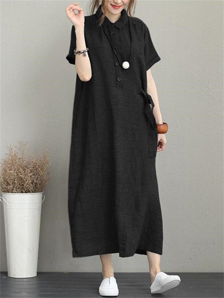 Loose Short Sleeve Women's Temperament Casual Pocket Dresses