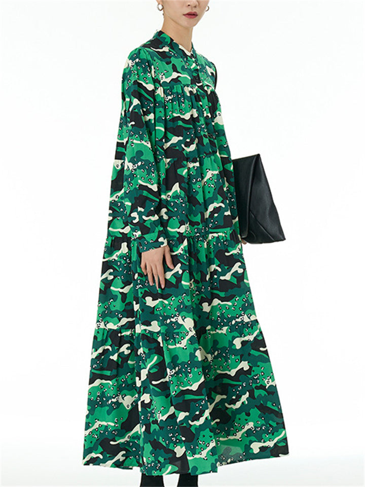 Women's Casual Solid Color Round Neck Double-layer Big Hem Midi Dress