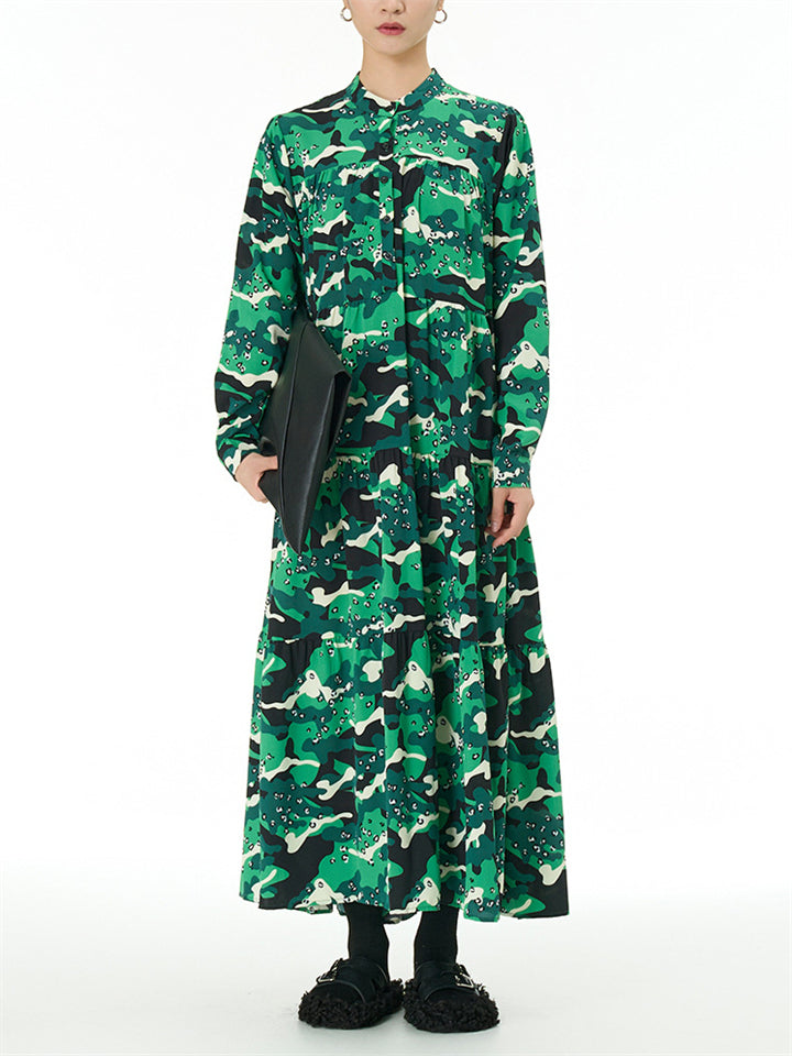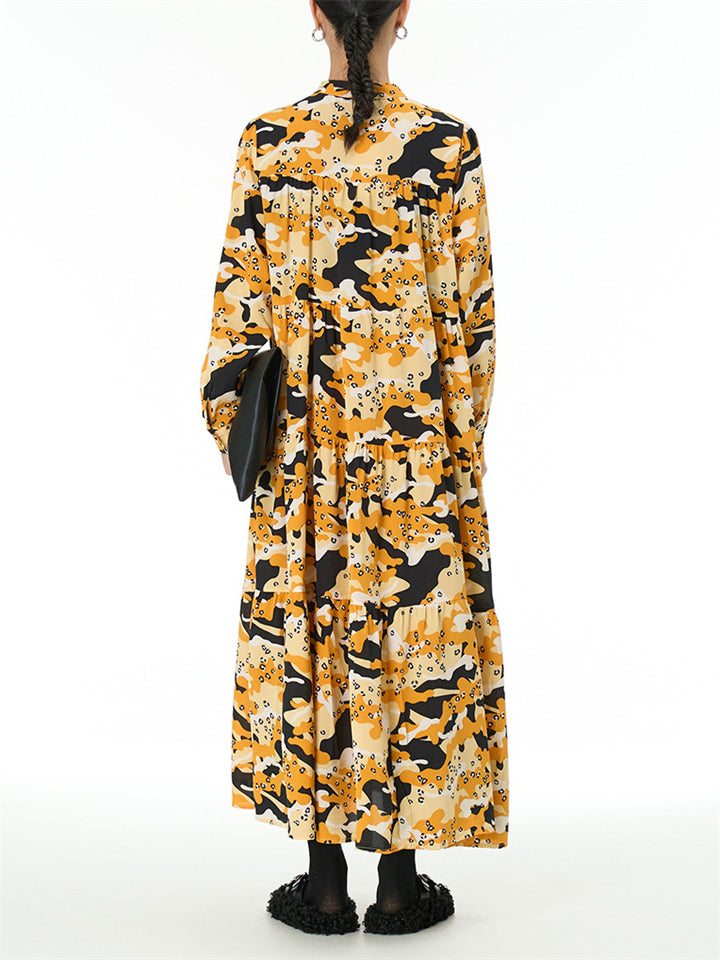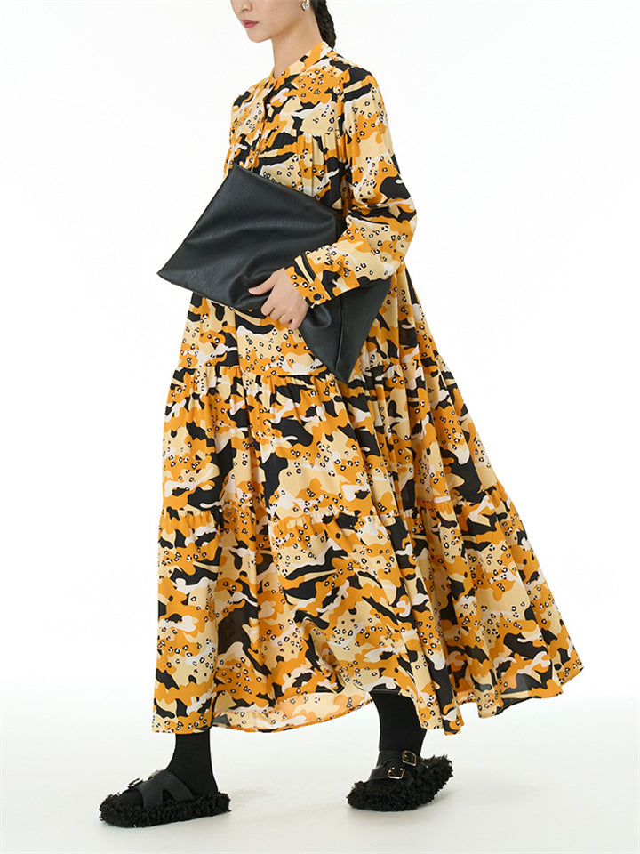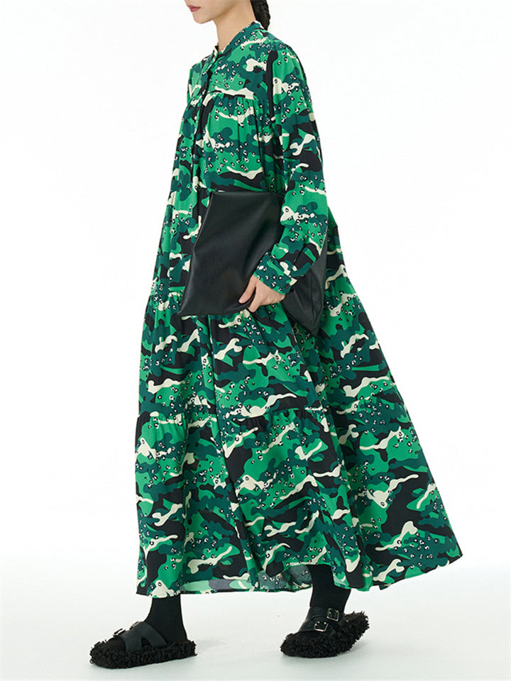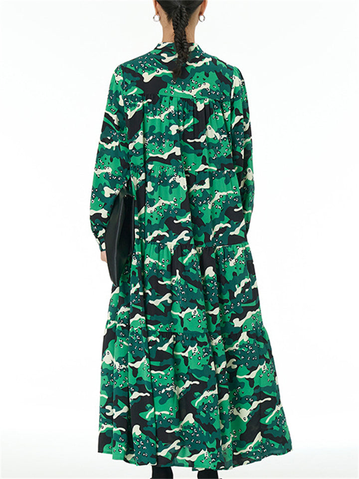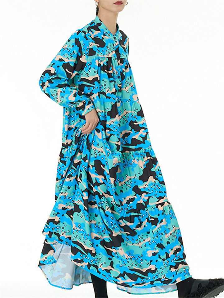 Women's Summer Printed Patchwork Half Sleeve Big Hem Maxi Dress