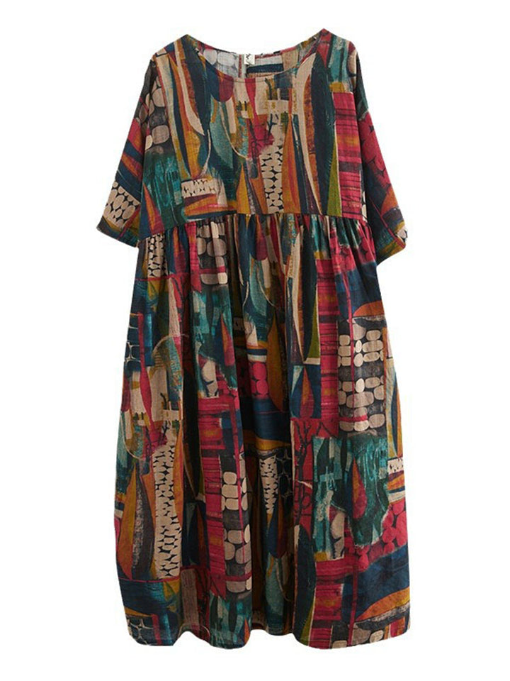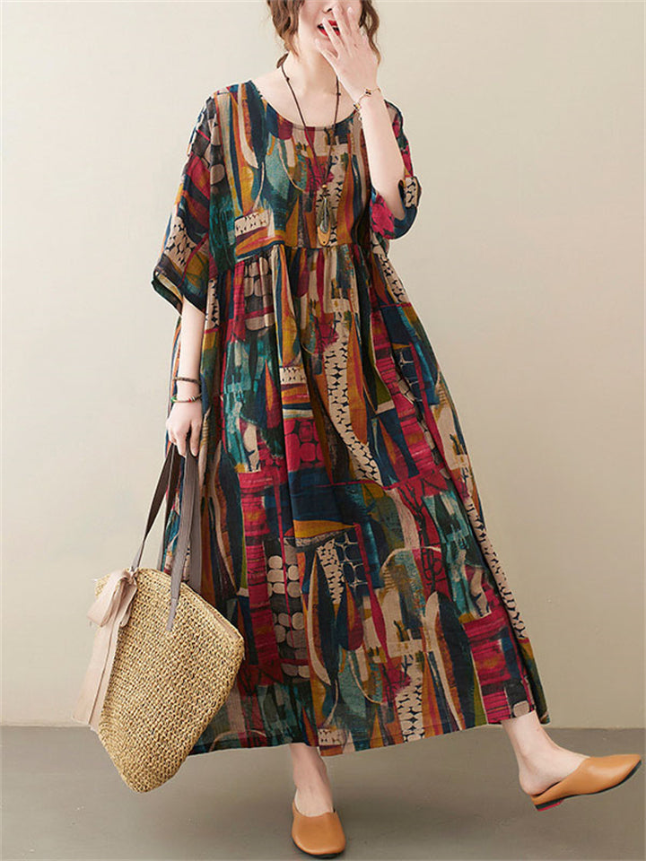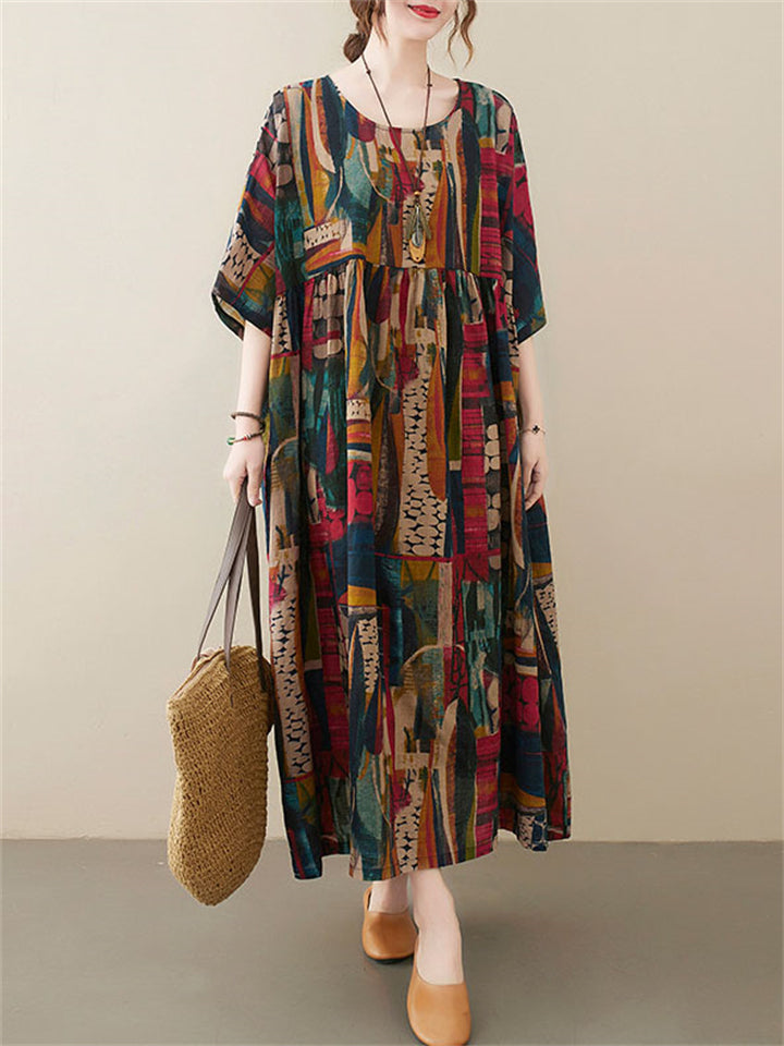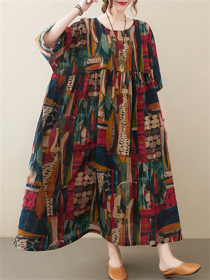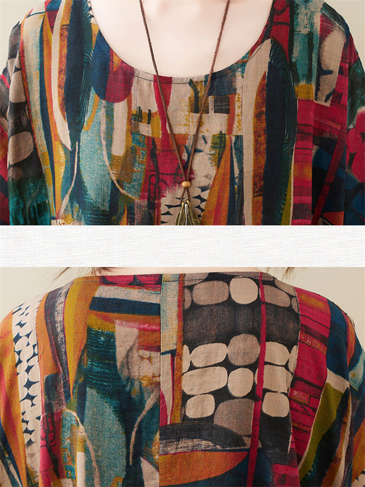 Plus Size Round Neck Abstract Print Oversized Dress for Women