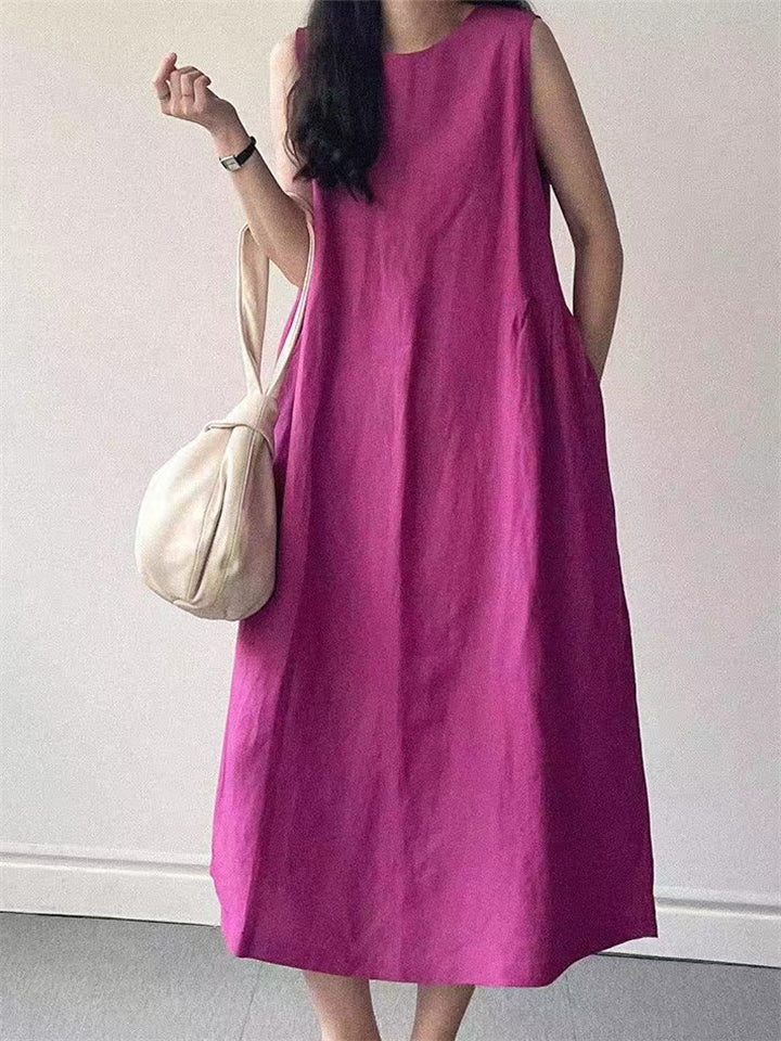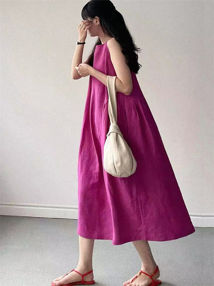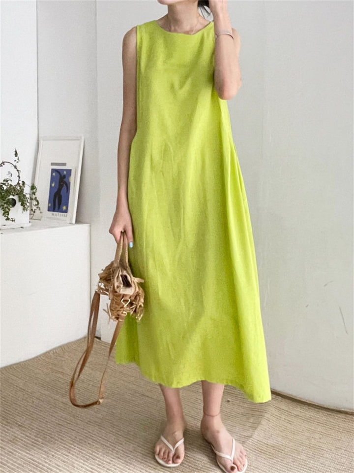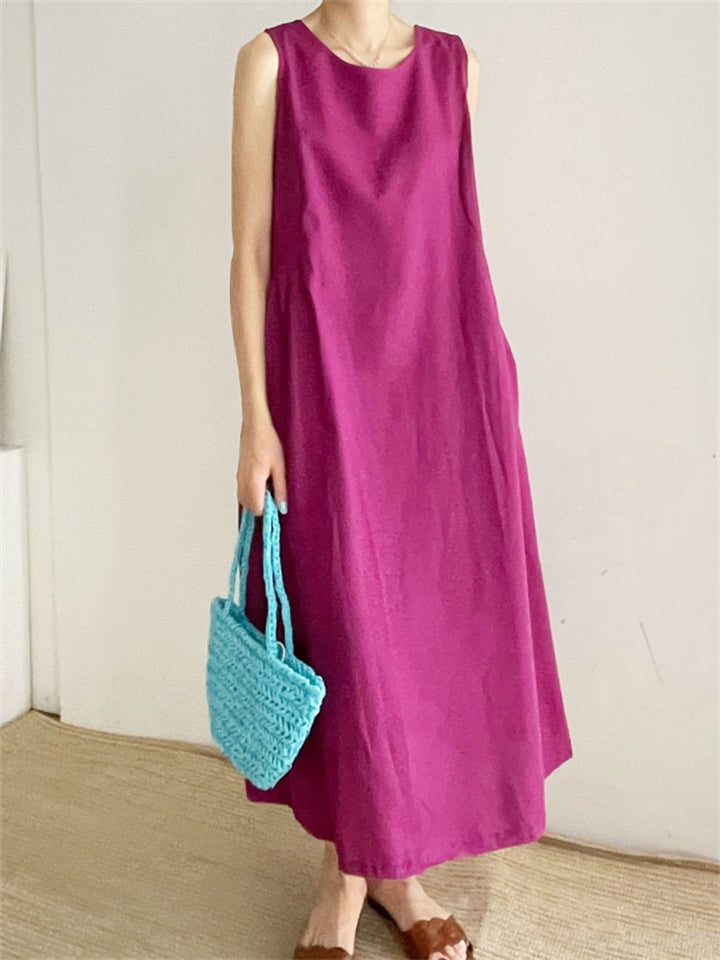 Relaxed Sleeveless Round Neck Holiday Sundress for Women