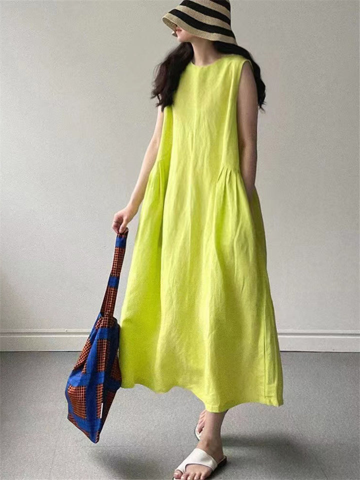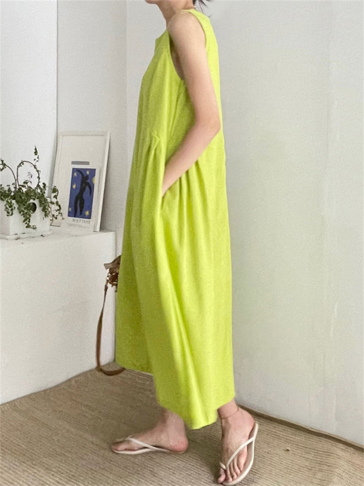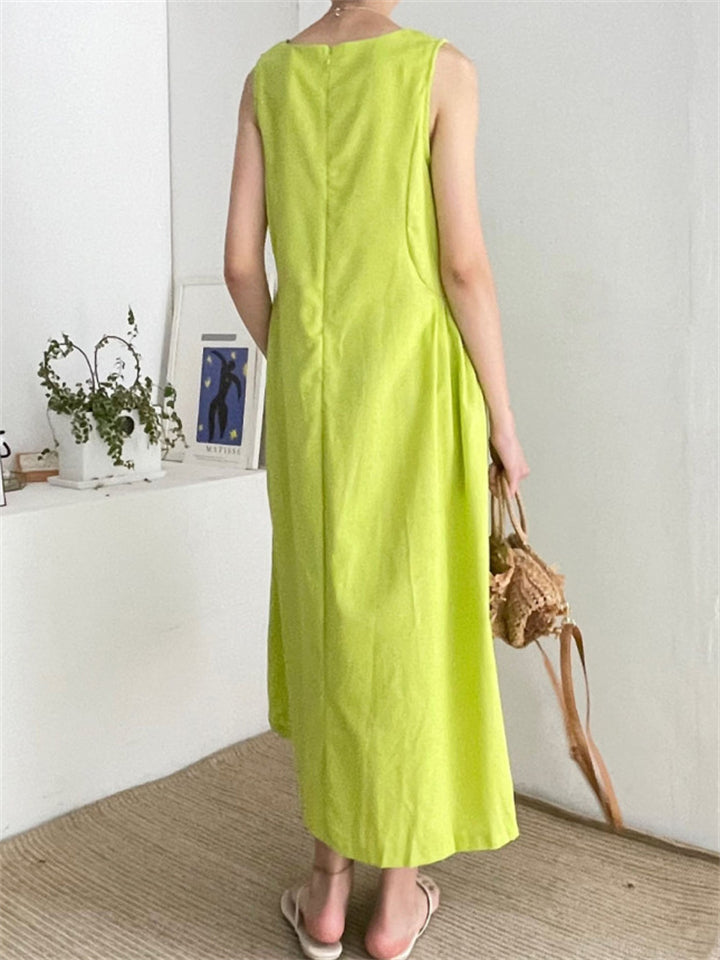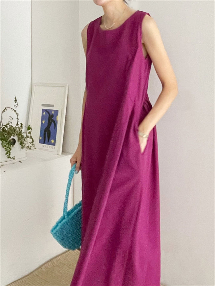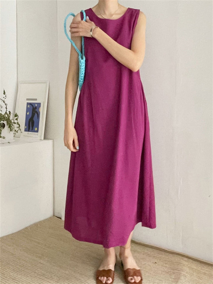 Relaxed Sleeveless Round Neck Holiday Sundress for Women