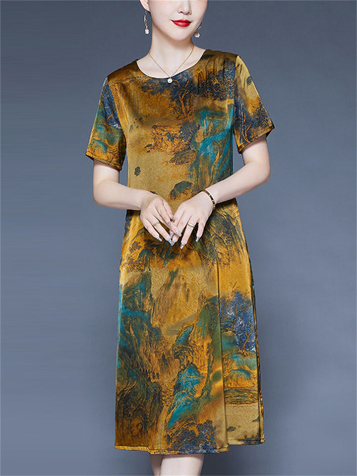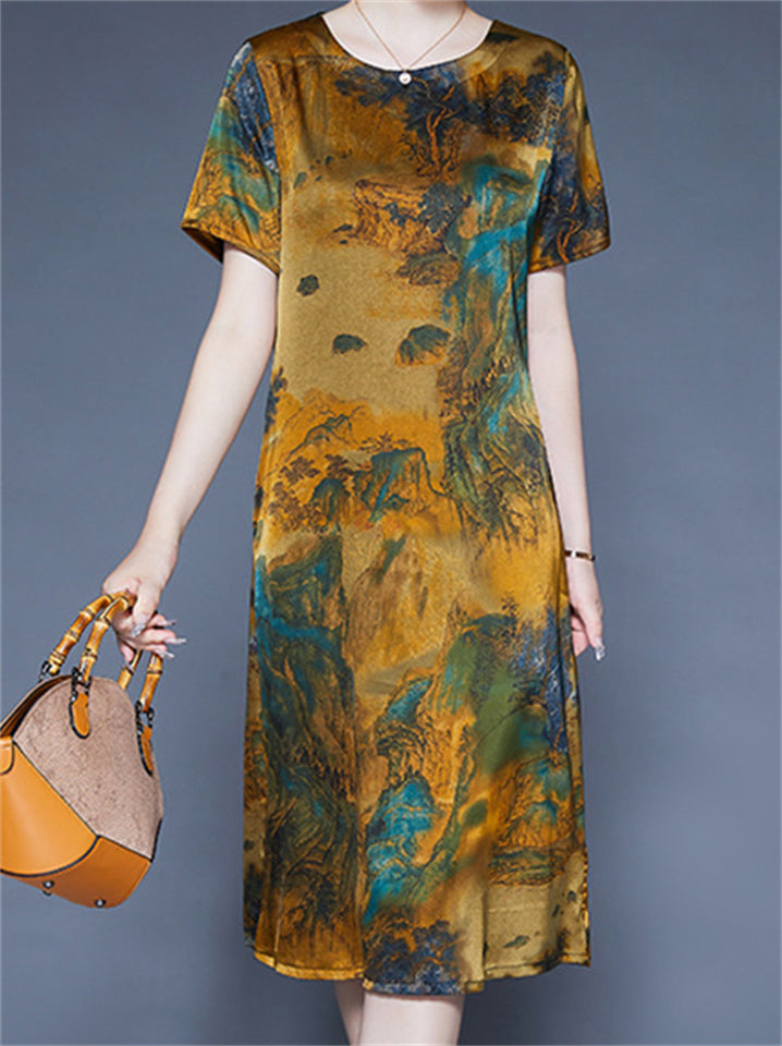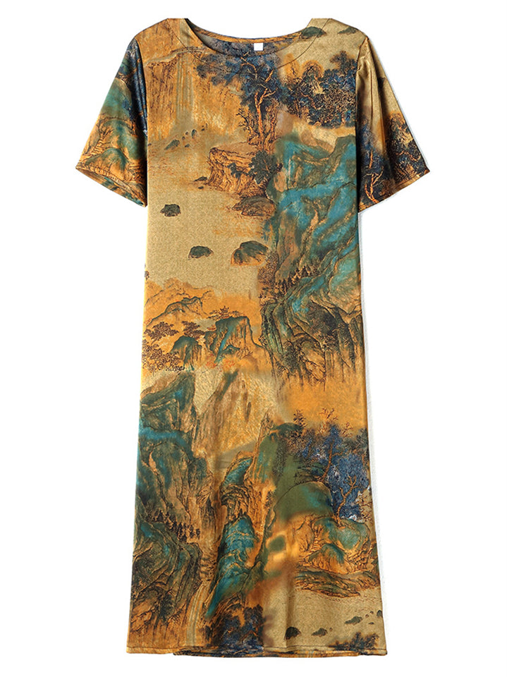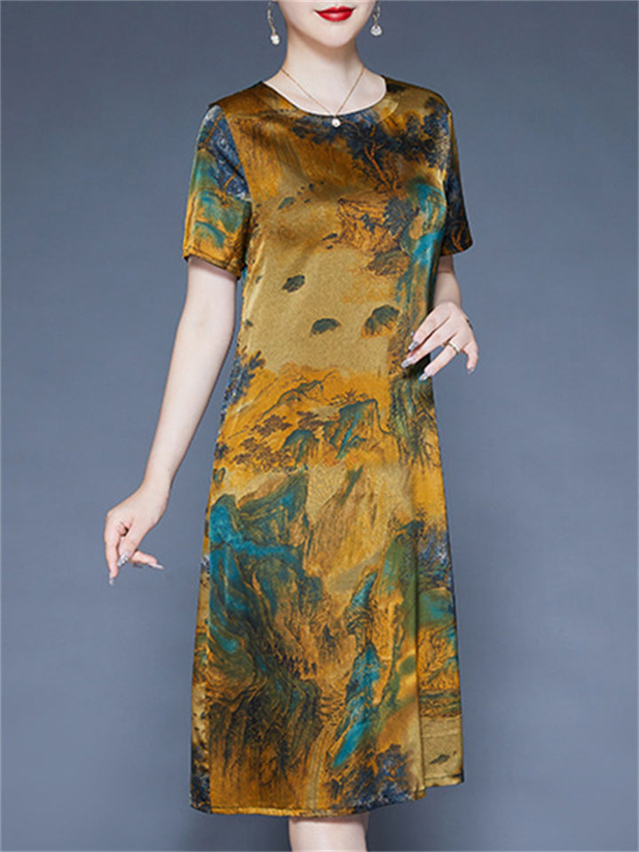 Summer Casual O-neck Landscape Print A-Line Dress for Women