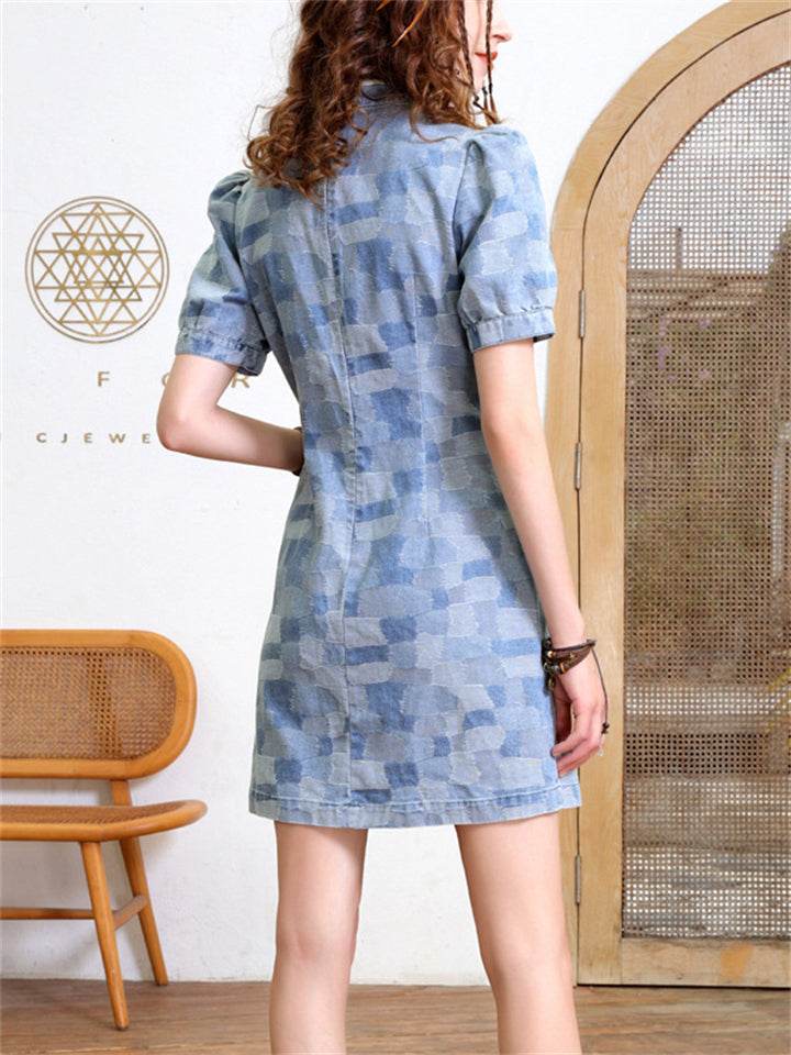 Summer Cozy Slim Fit Knee Length Blue Denim Dress for Women