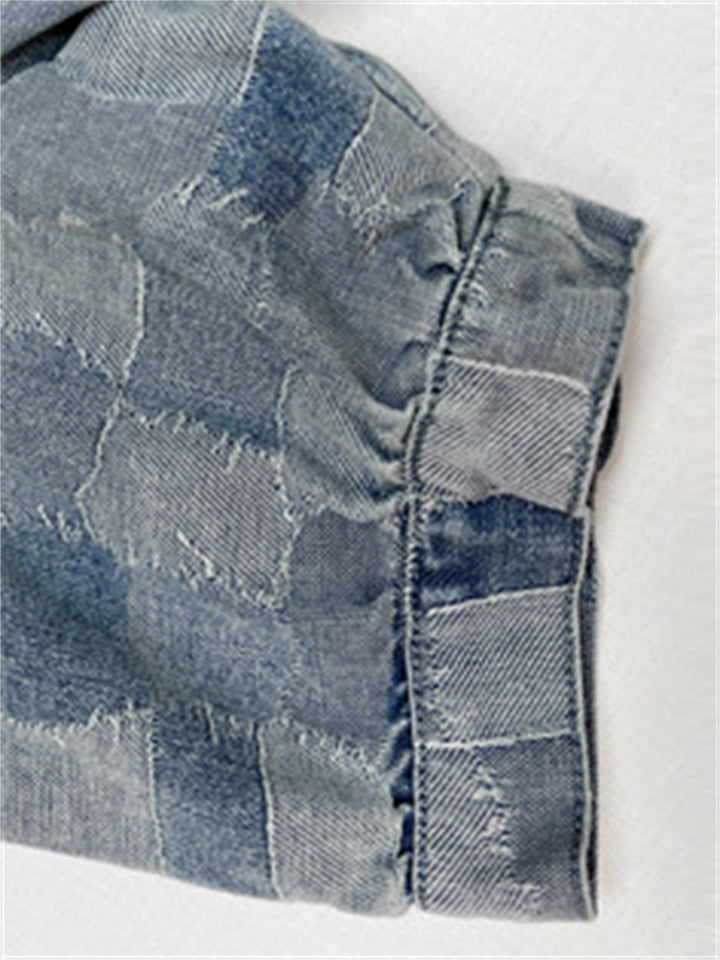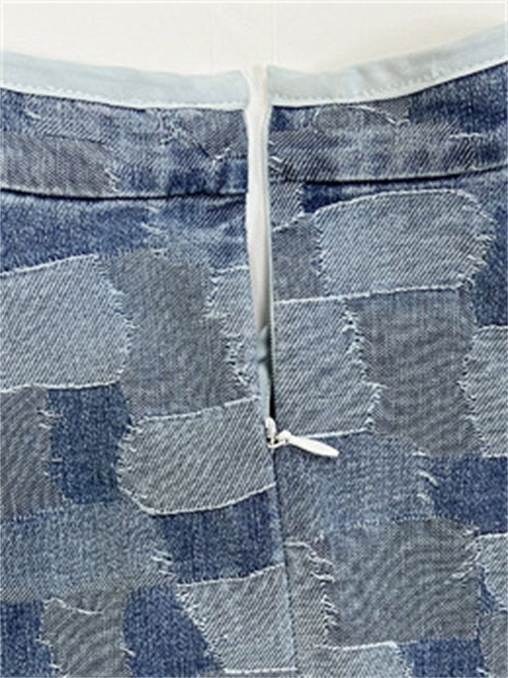 Women's Printed Denim Chiffon Patchwork Big Hem Dress