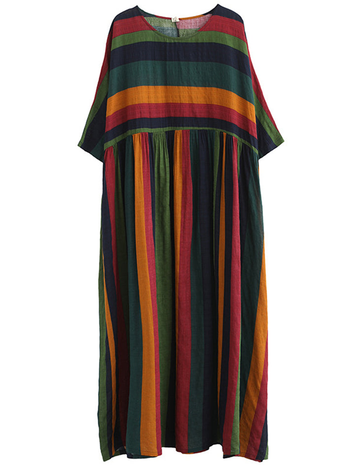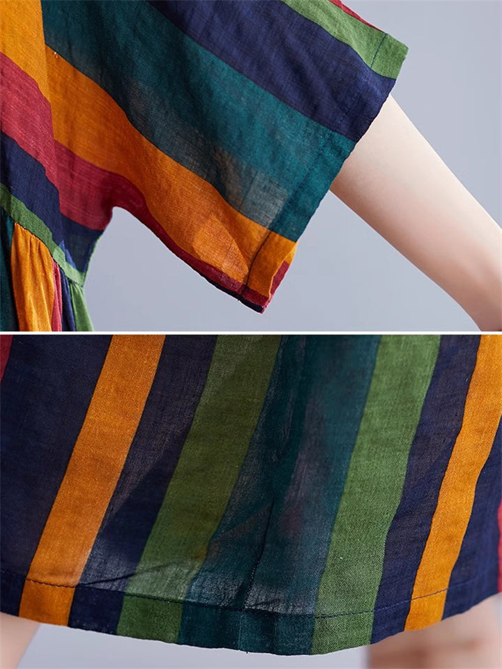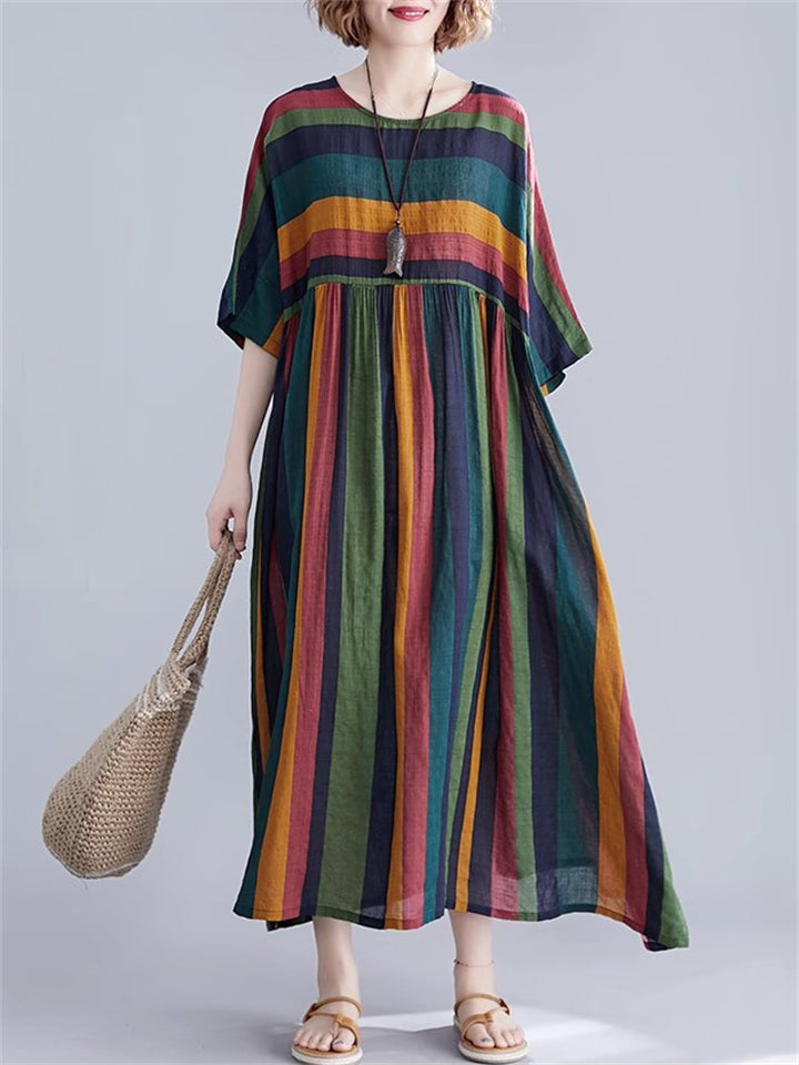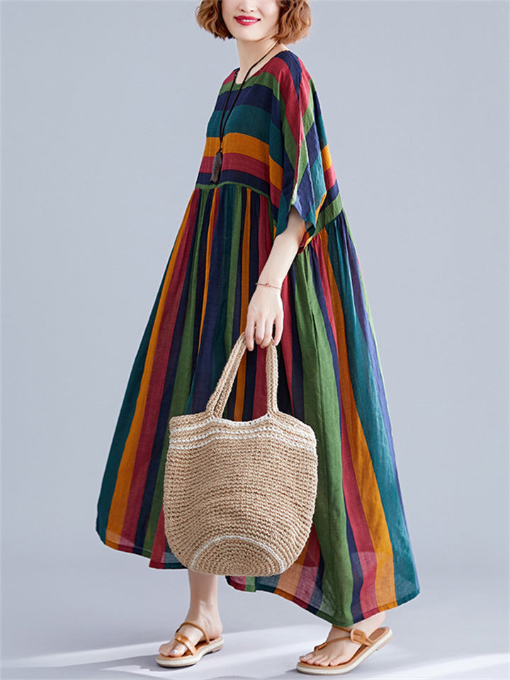 Summer Rainbow Stripes Vacation Long Dress for Women
