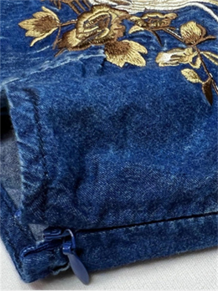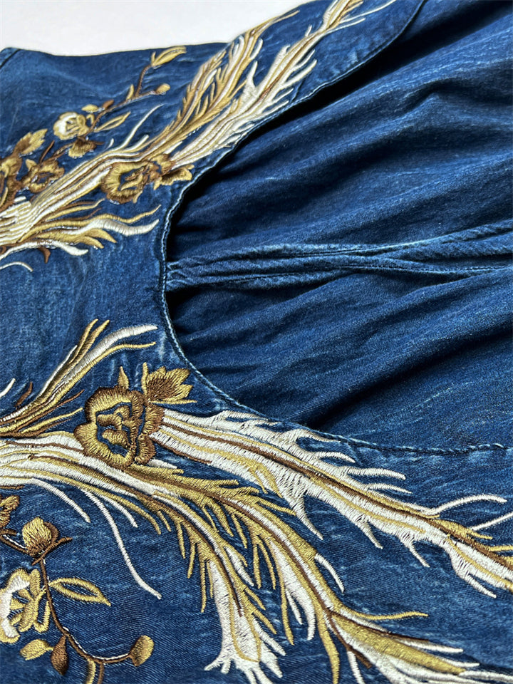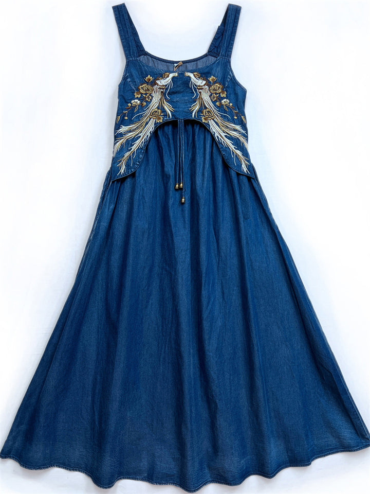 Summer Sleeveless Blue Denim Embroidery Suspender Dress