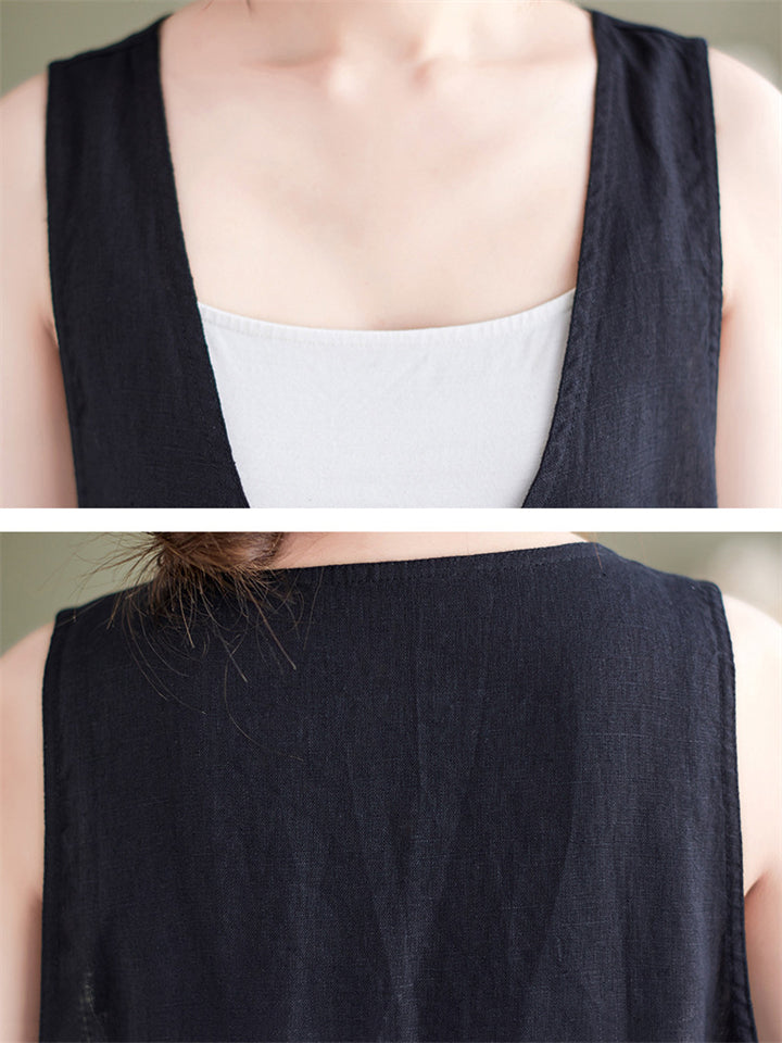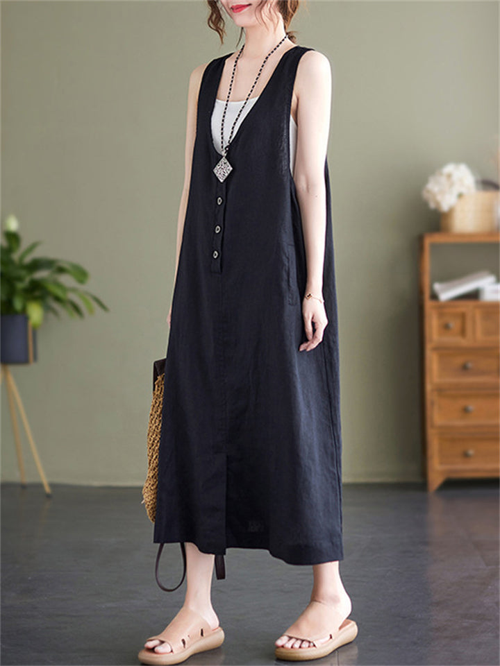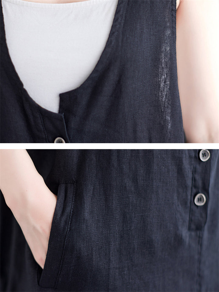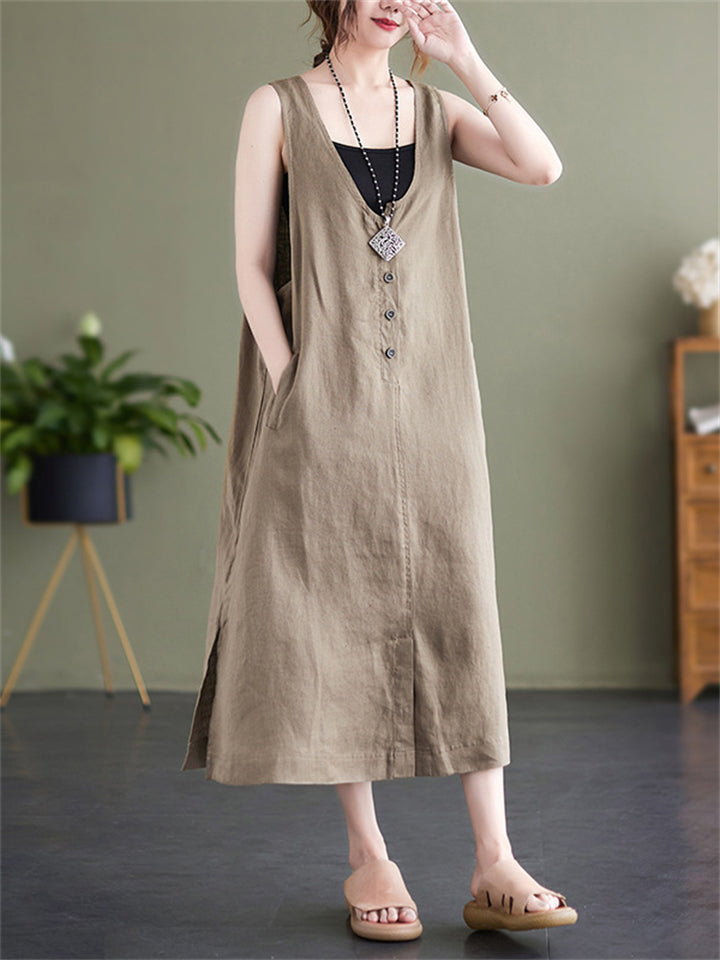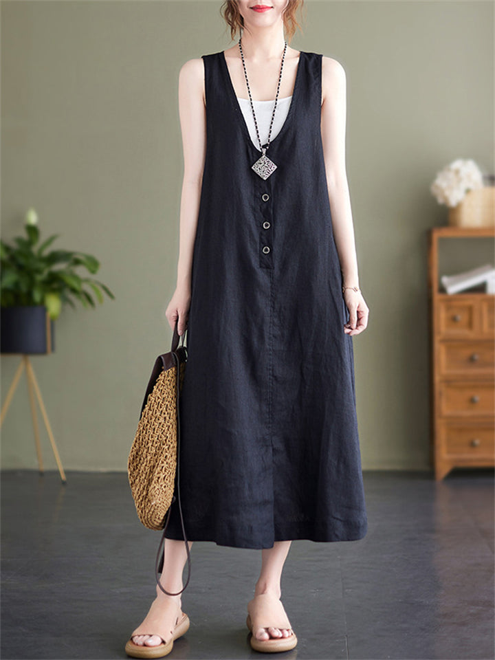 Summer U Neck Sleeveless Loose Linen A-Line Dress for Women