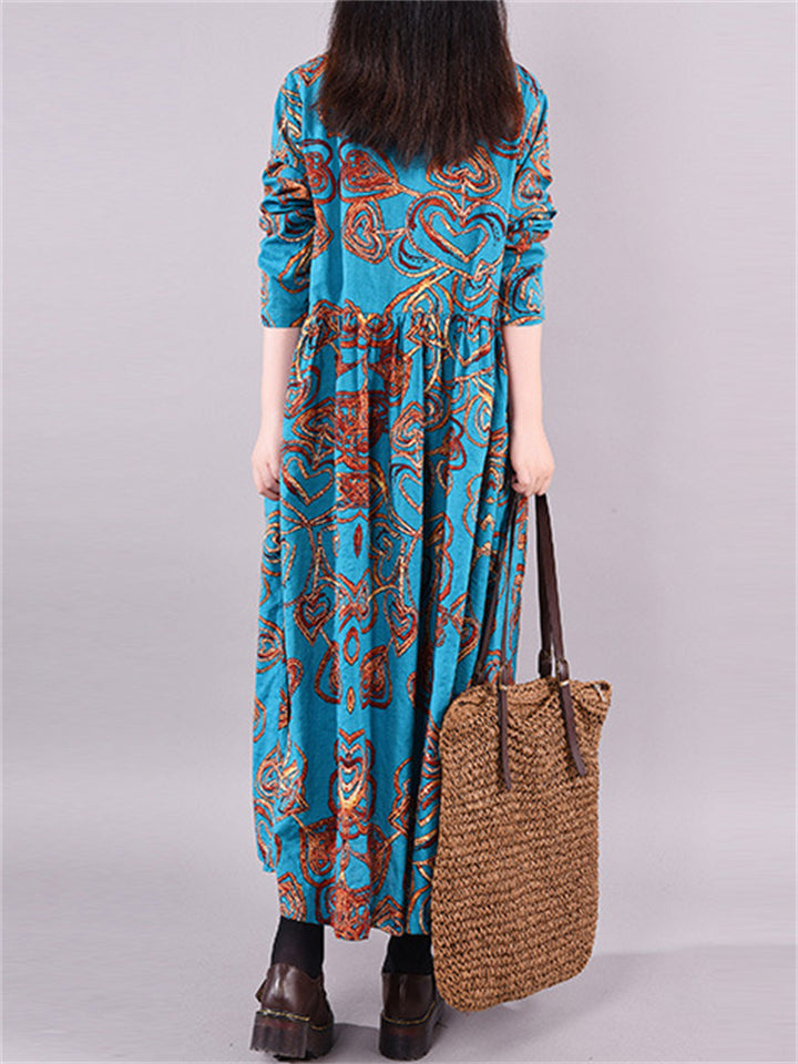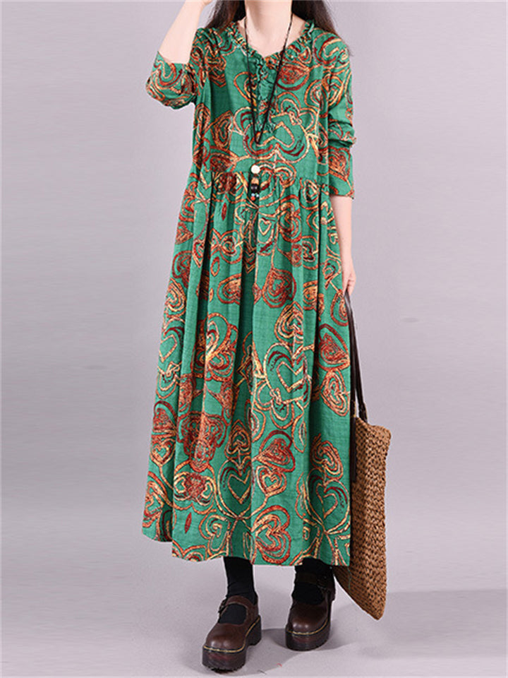 Women's Trendy Ethnic Holiday Style Print V Neck Maxi Dress