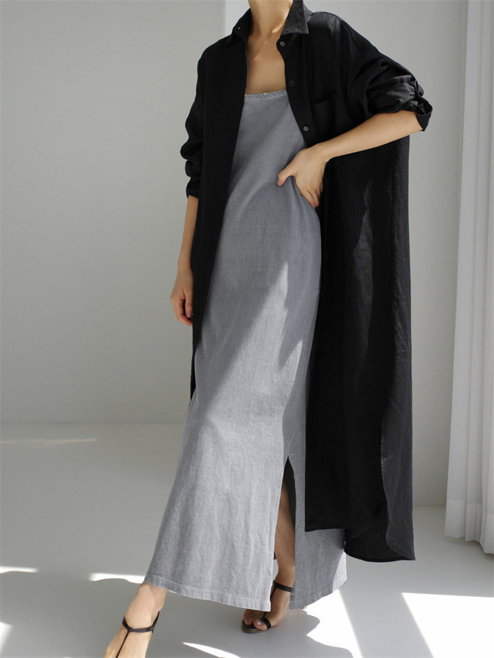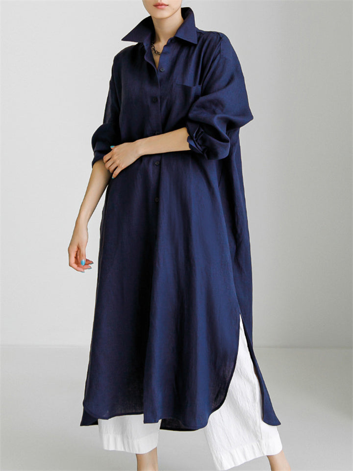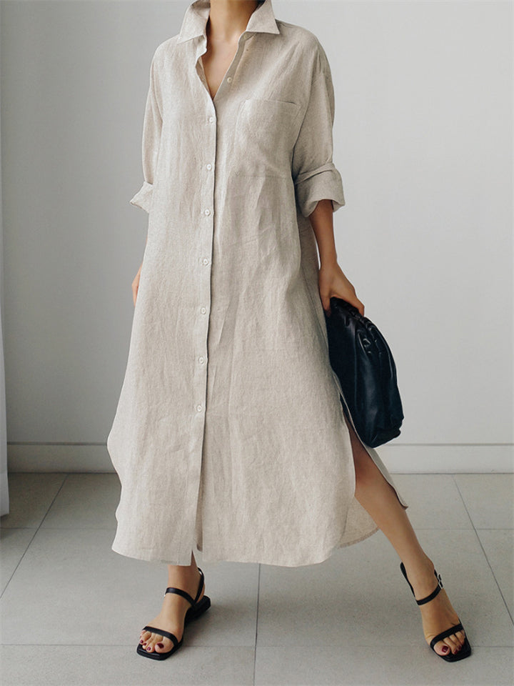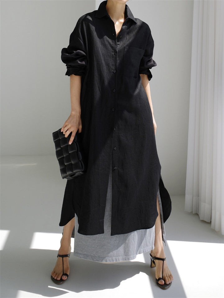 Vogue Single-Breasted Side Split Mid-Length Shirt Dress for Lady