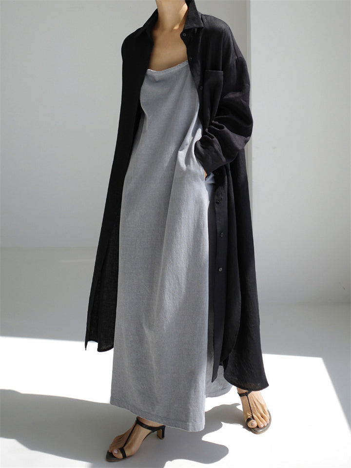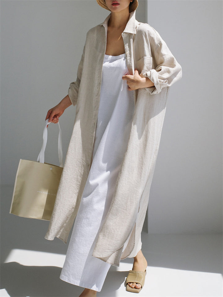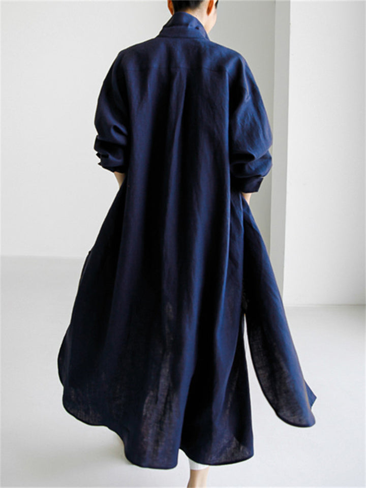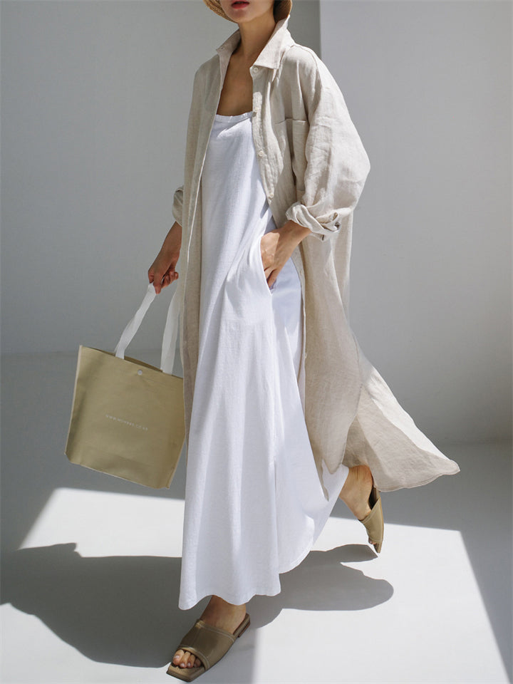 Women's Elegant White Solid Color Loose Button Up Shirt Dress