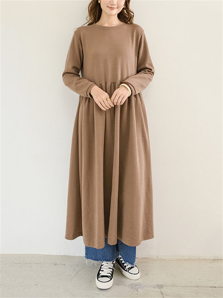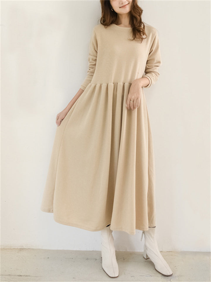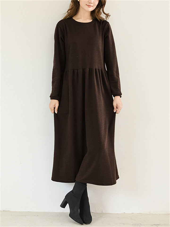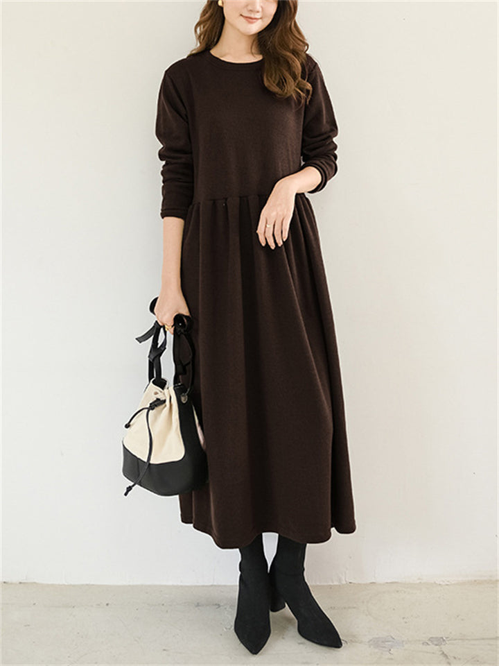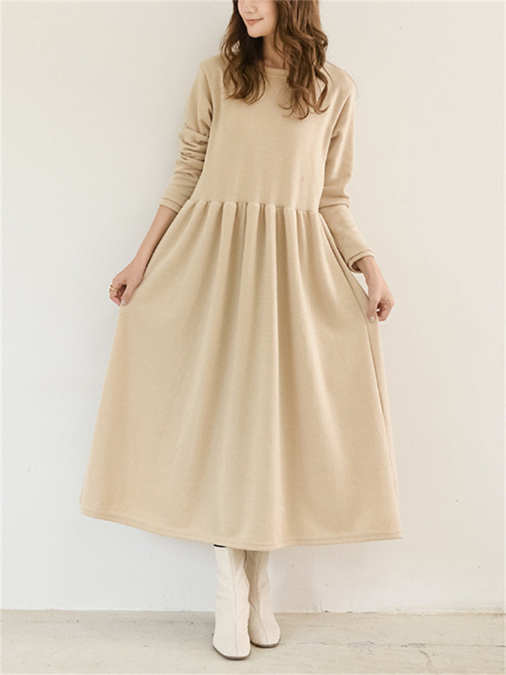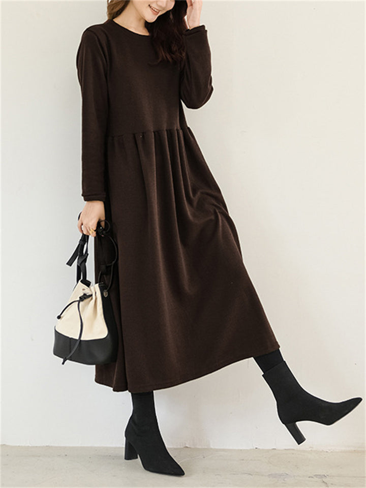 Winter Gentle Round Neck Long Sleeve A-Line Dress for Women