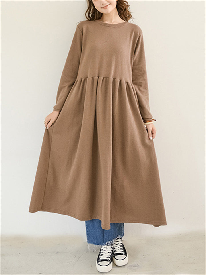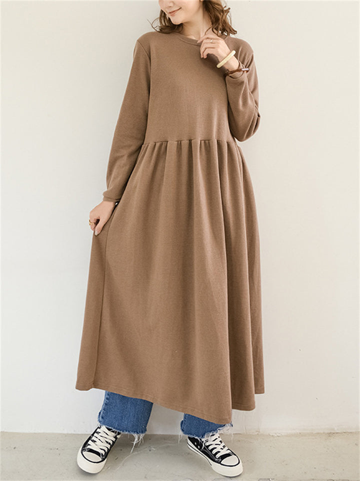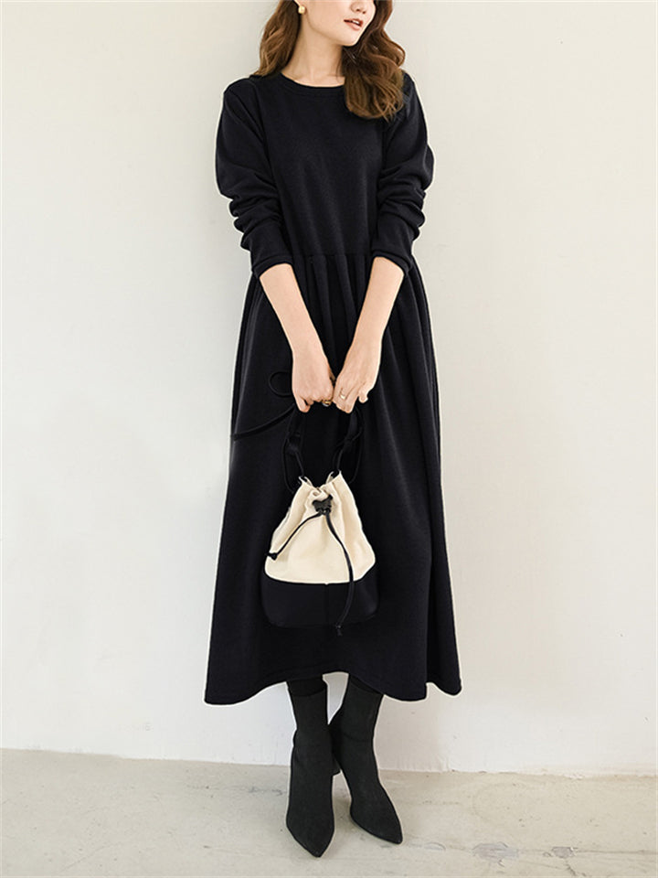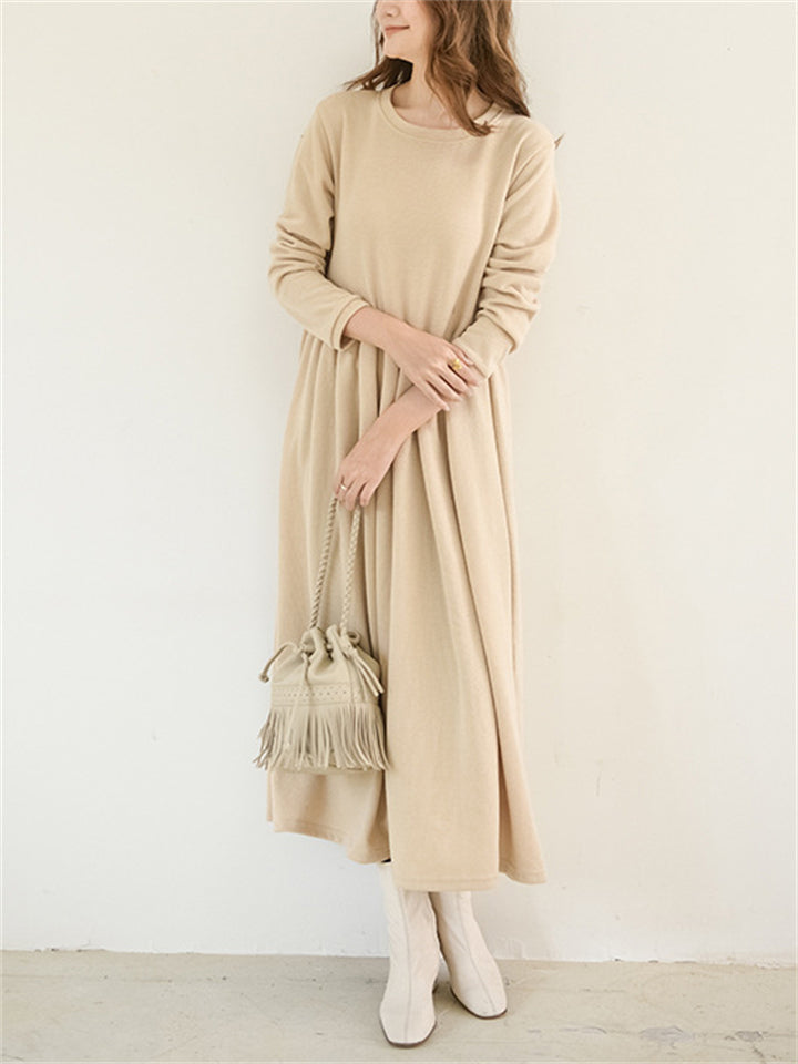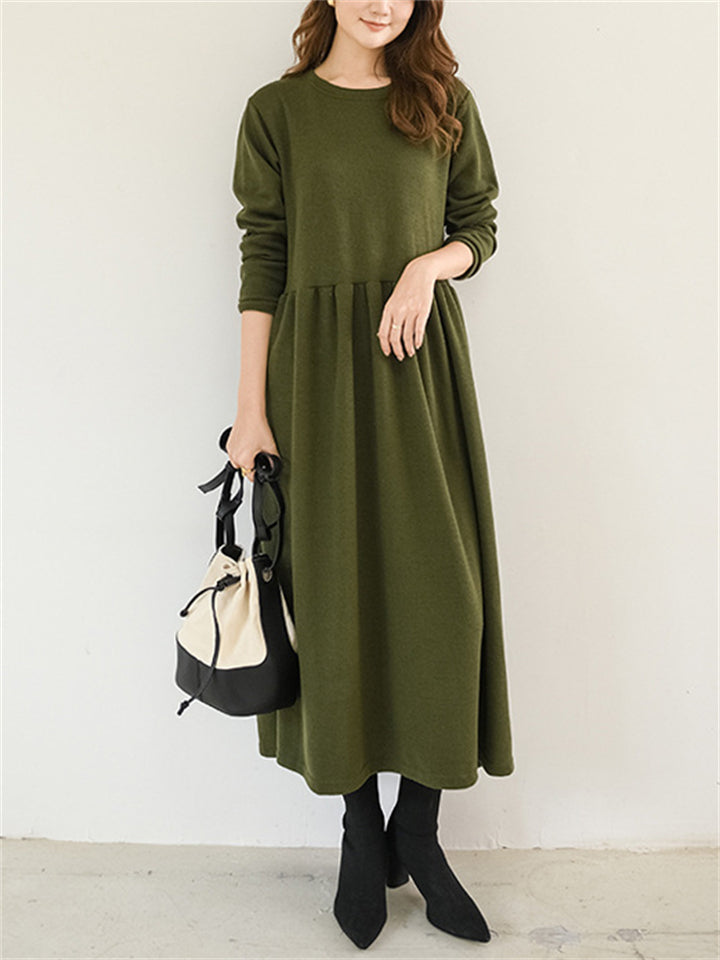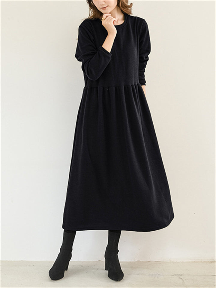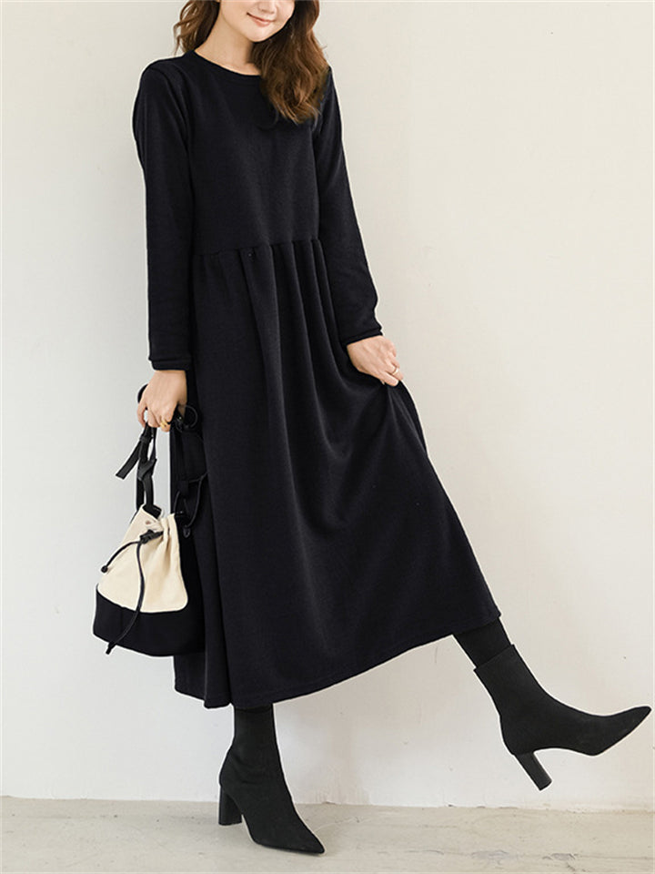 Winter Gentle Round Neck Long Sleeve A-Line Dress for Women