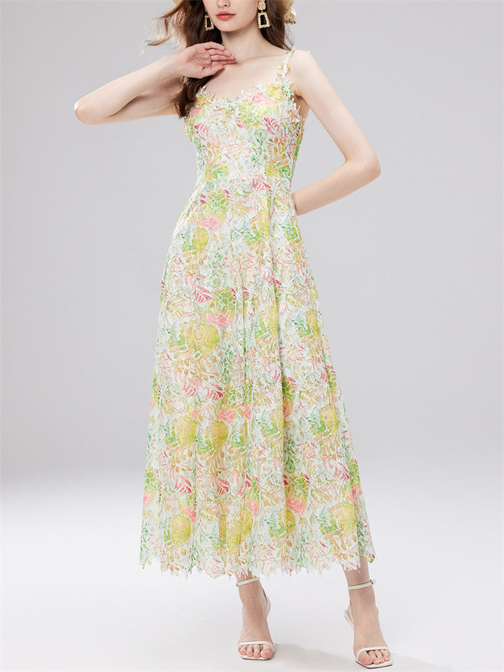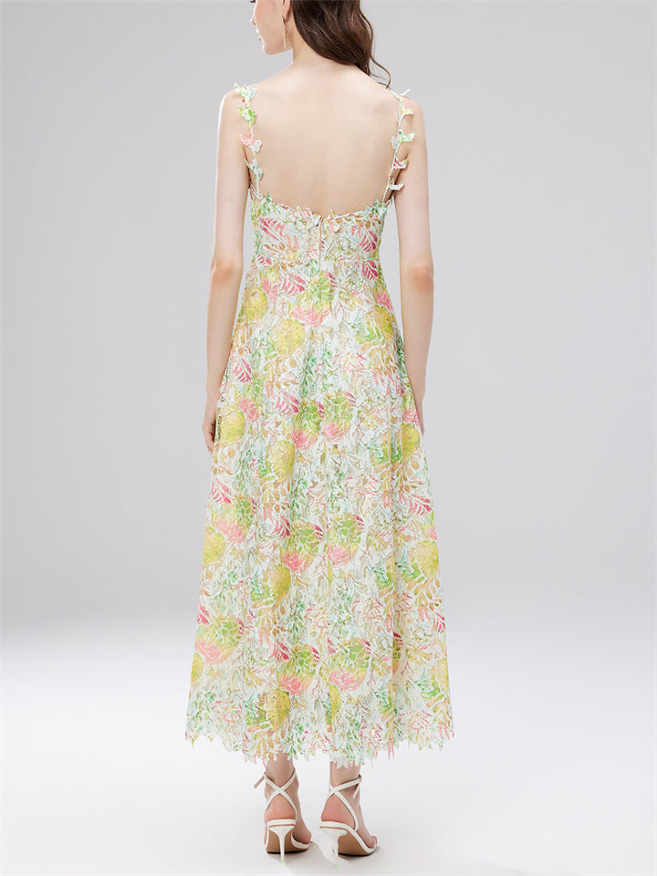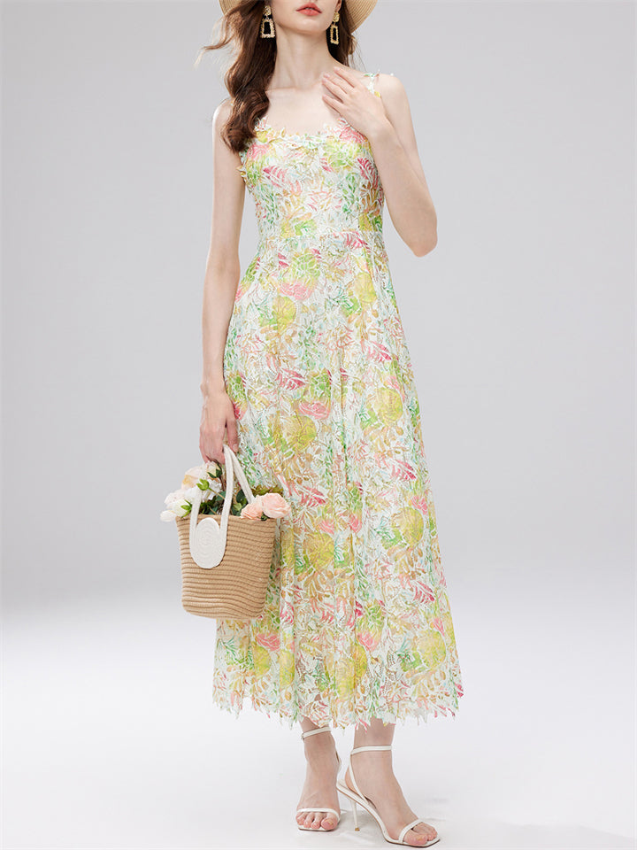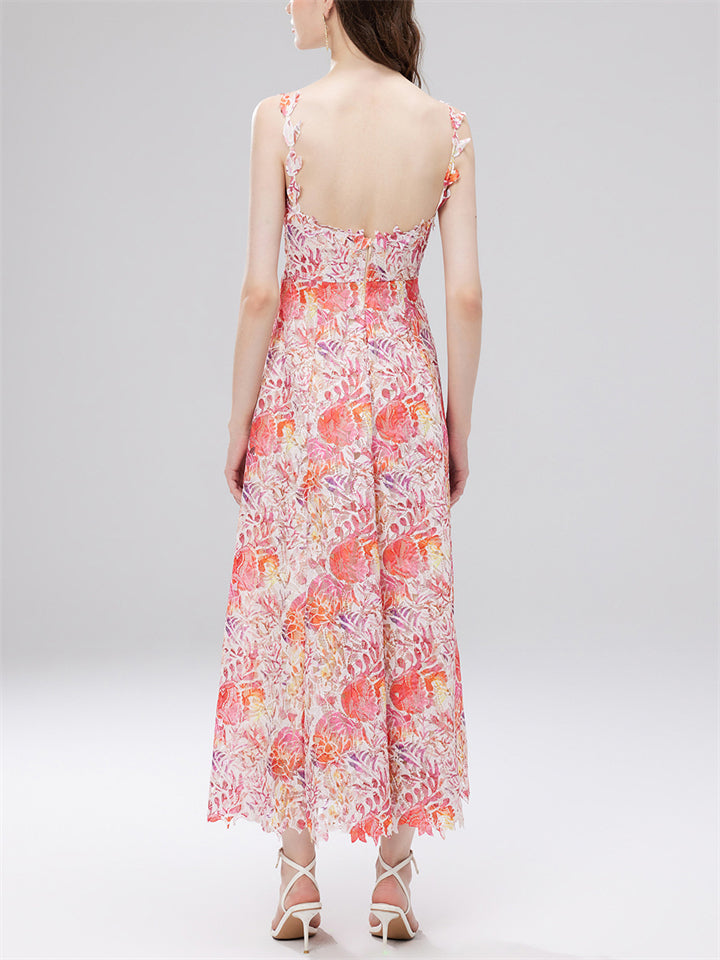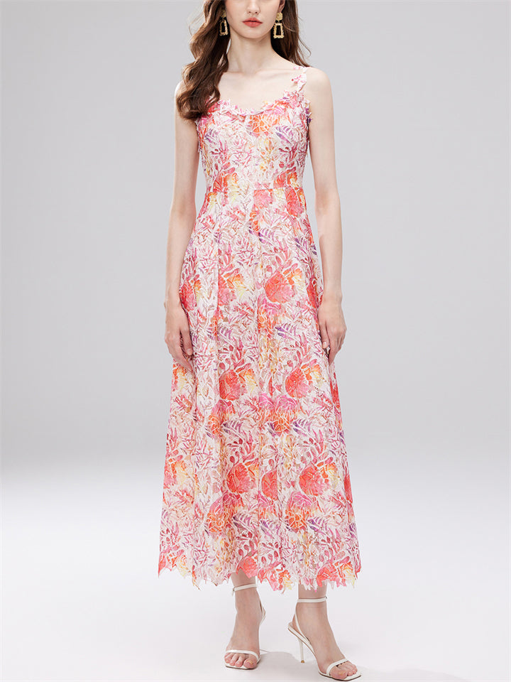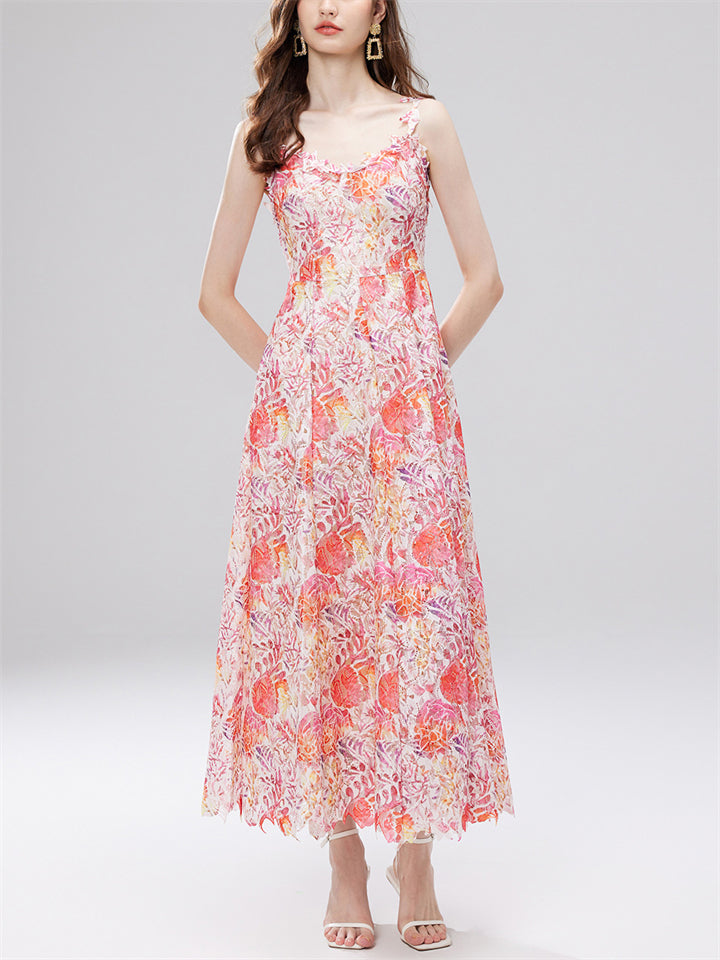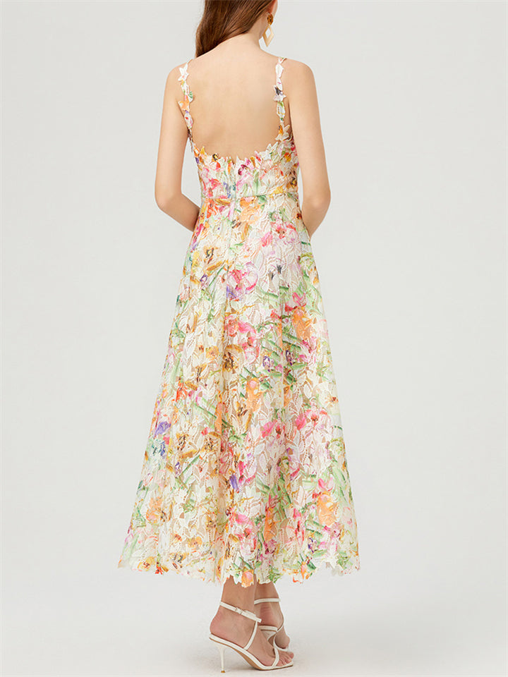 Women's Summer Elegant Flowers Printed V Neck Sleeveless Dress
