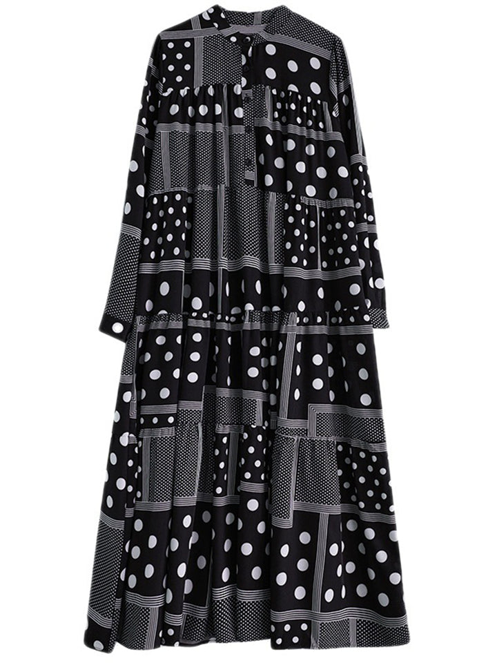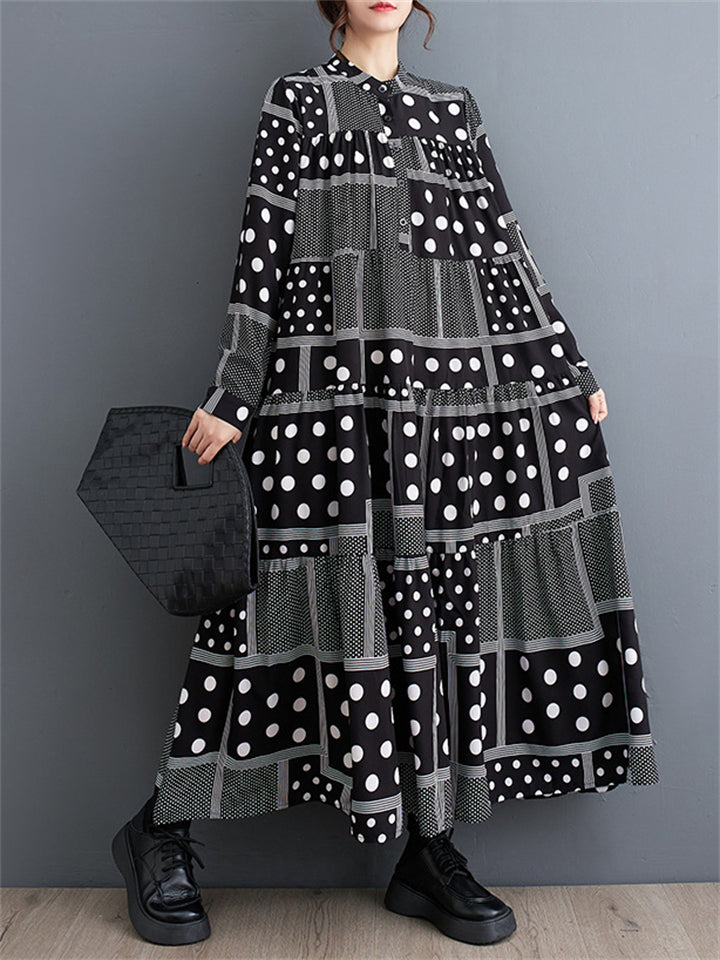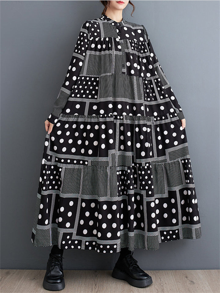 Women's Black & White Polka Dot Plaid Pleated Dress